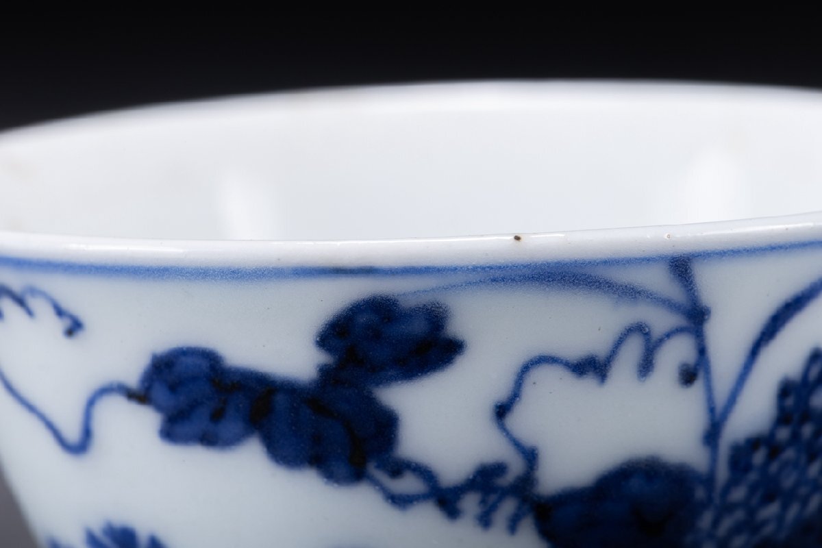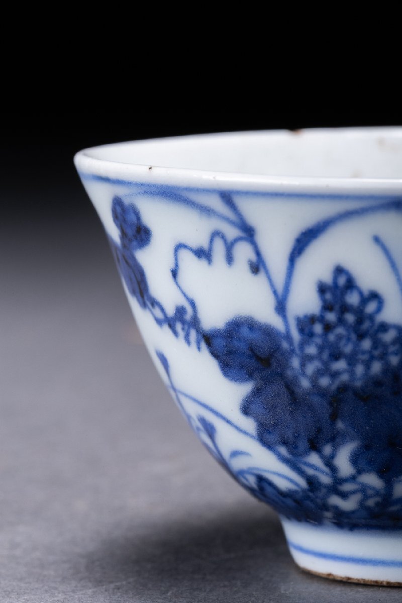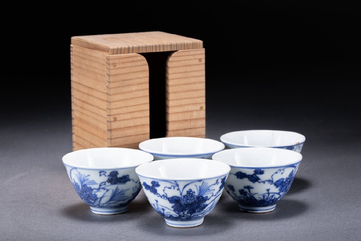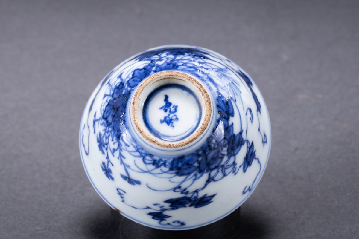 【華】某有名収集家買取品 時代物 古京焼 染付き はお花花卉紋茶碗 茶煎道具 傷あり 古美術 骨董品A25070149-IR