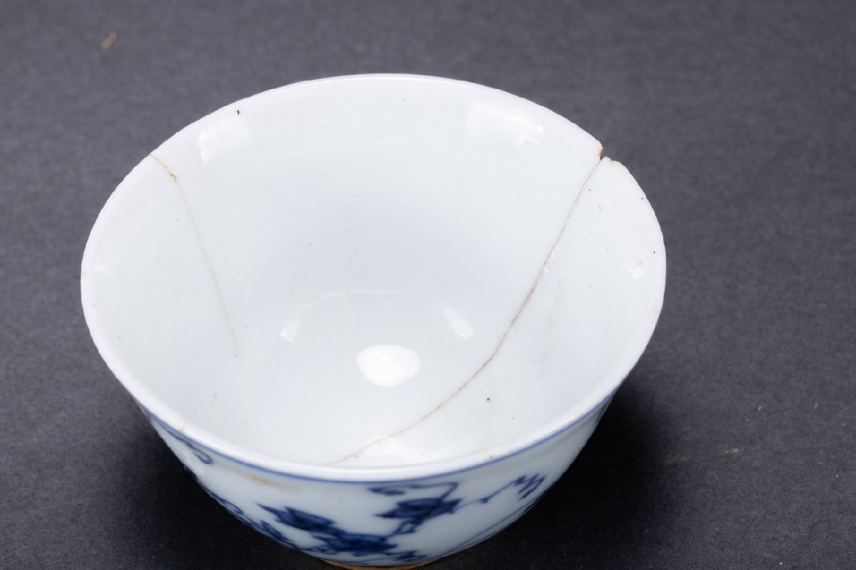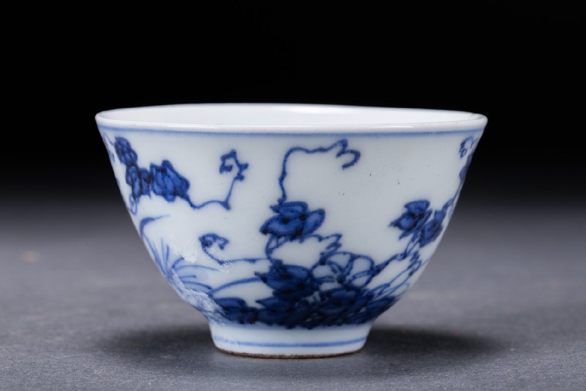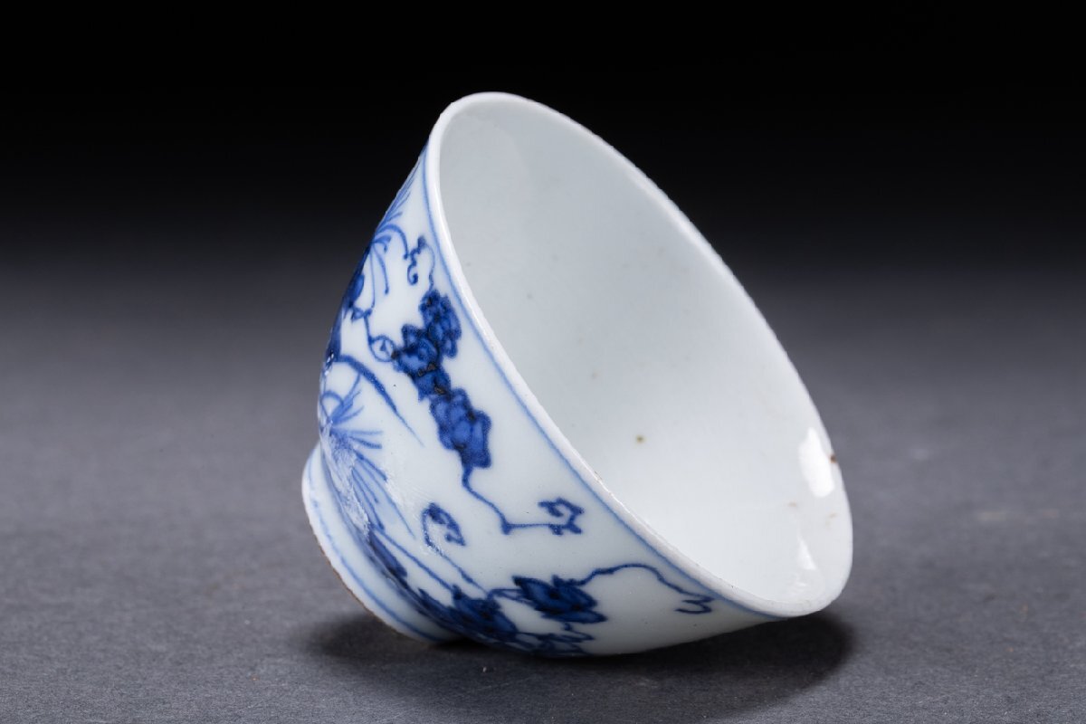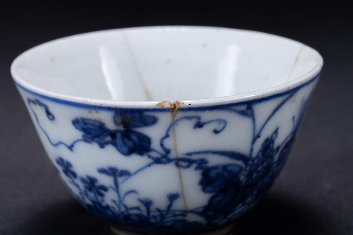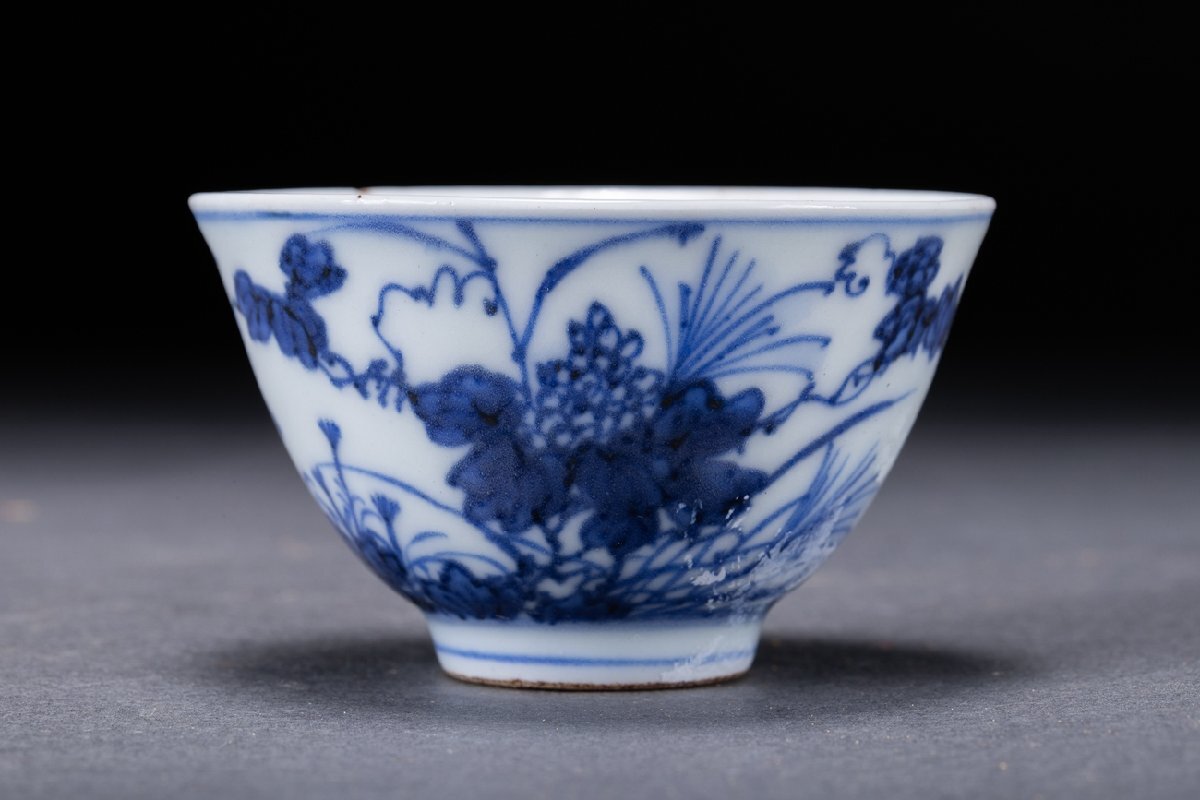 【華】某有名収集家買取品 時代物 古京焼 染付き はお花花卉紋茶碗 茶煎道具 傷あり 古美術 骨董品A25070149-IR