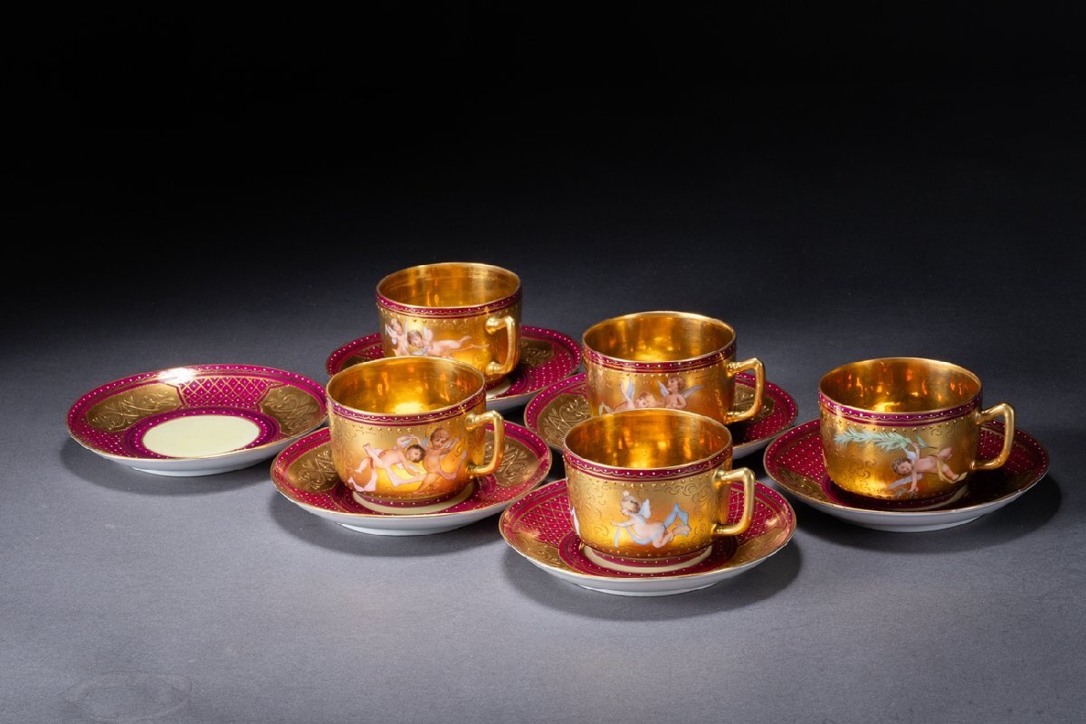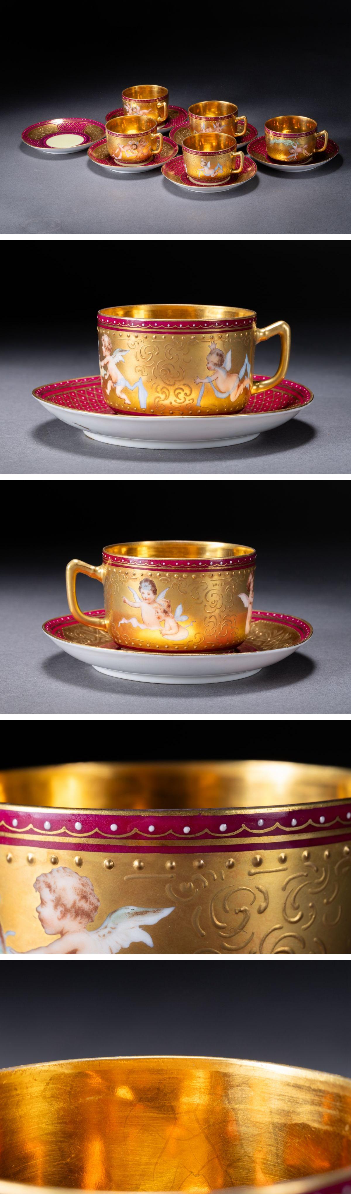 【華】時代舊藏 時代物 AUSTRIAコーヒーカップセット 五客 時代物 古美術 骨董品A25070137-RQ-IQ