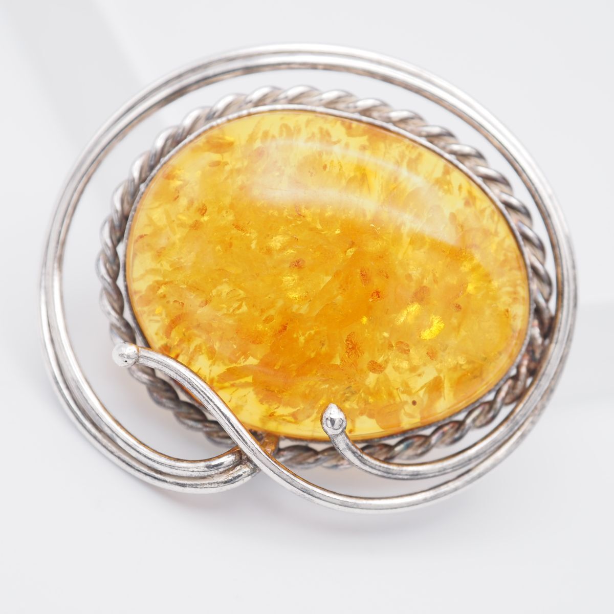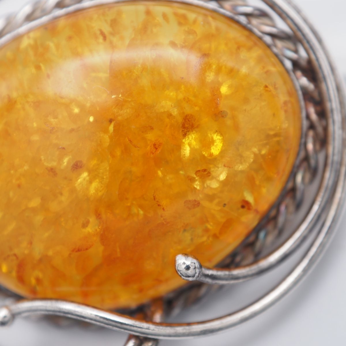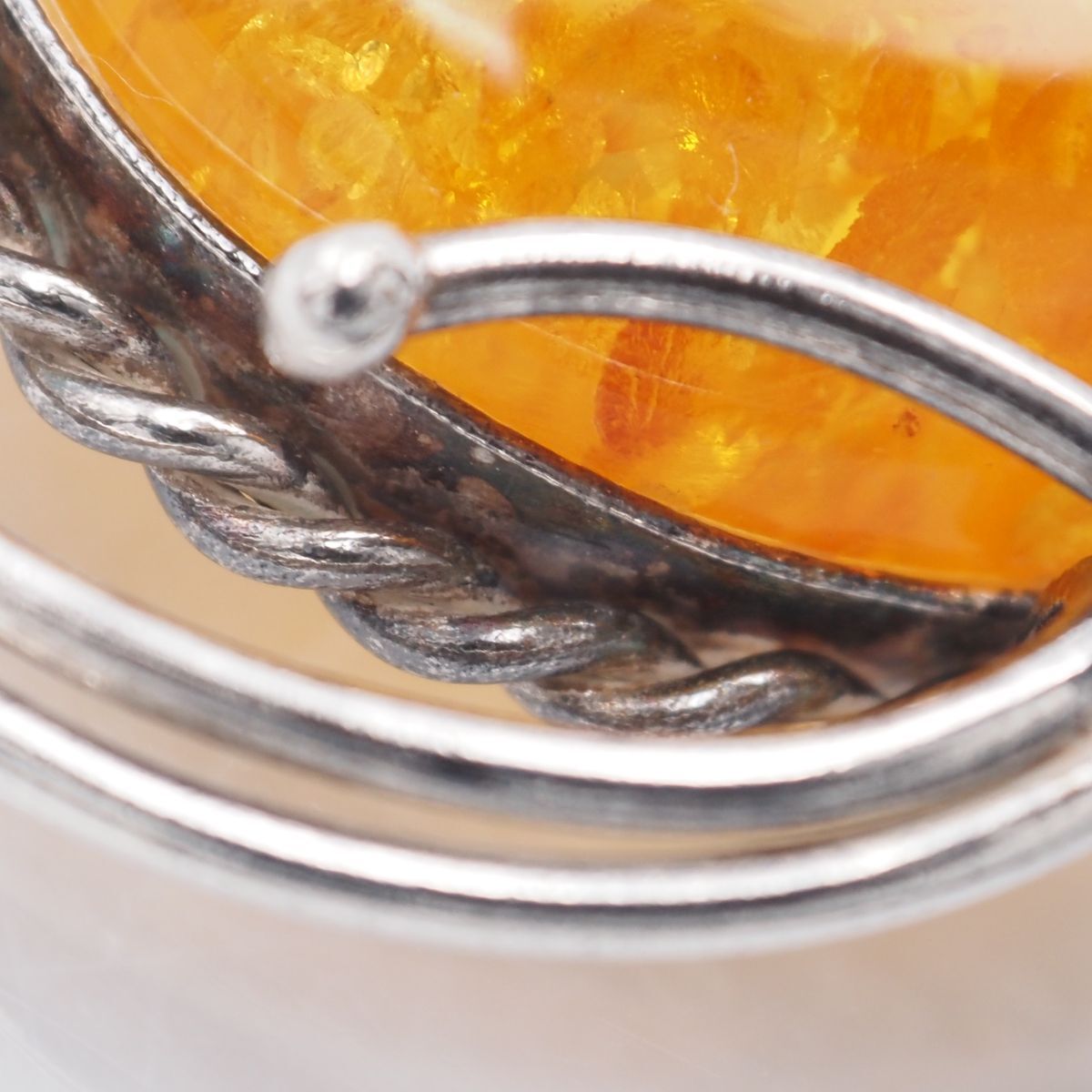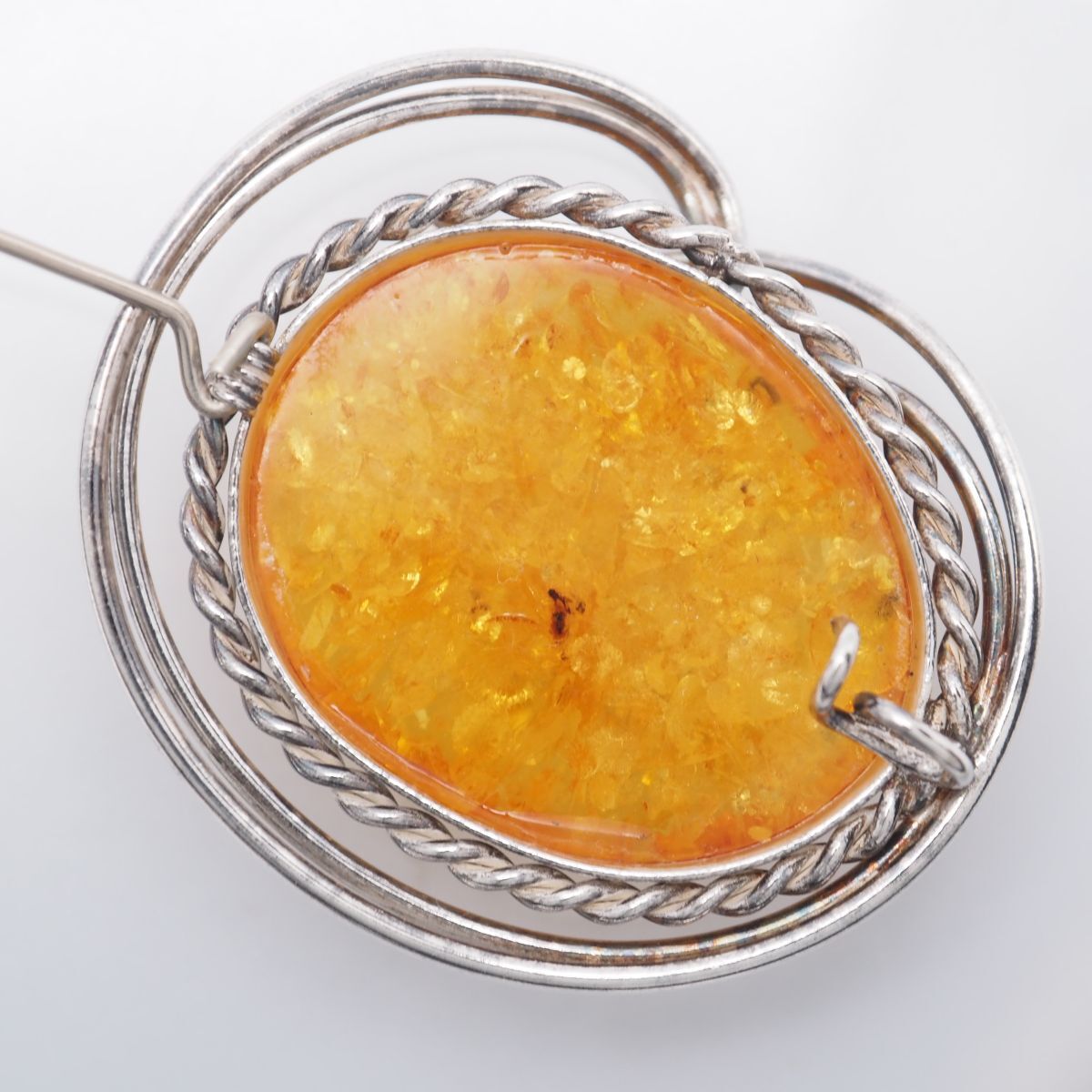 H482 琥珀 コハク アンバー ブローチ デザイン シルバー