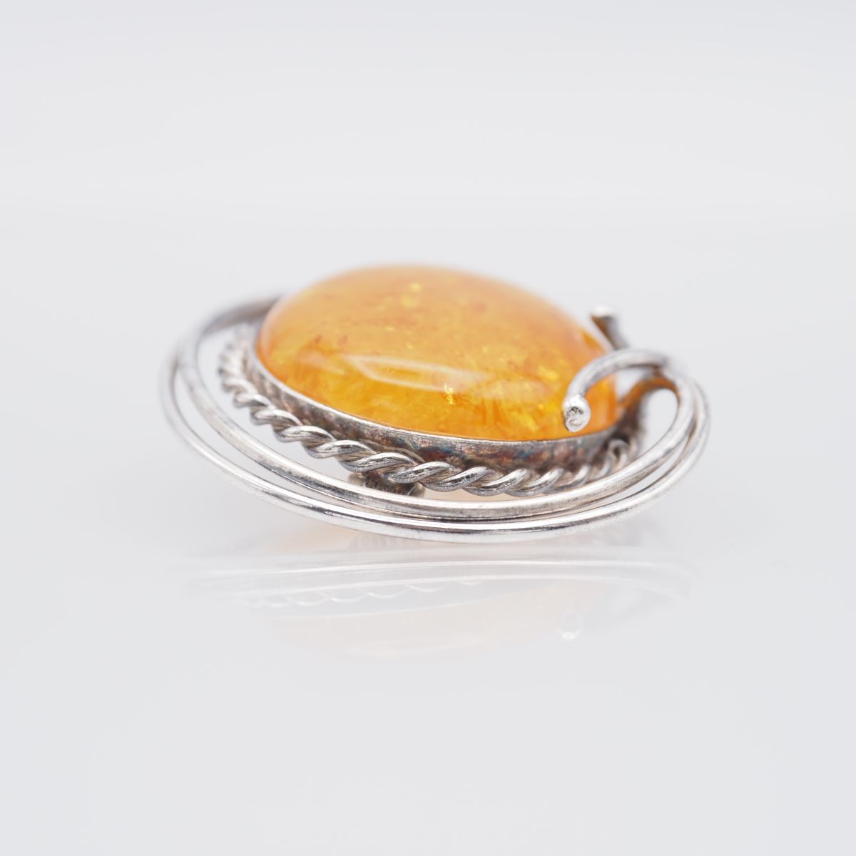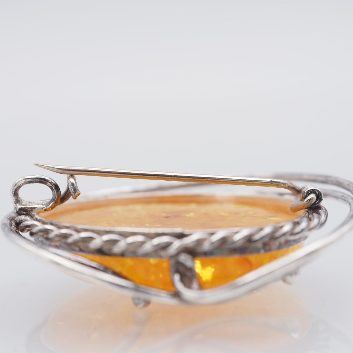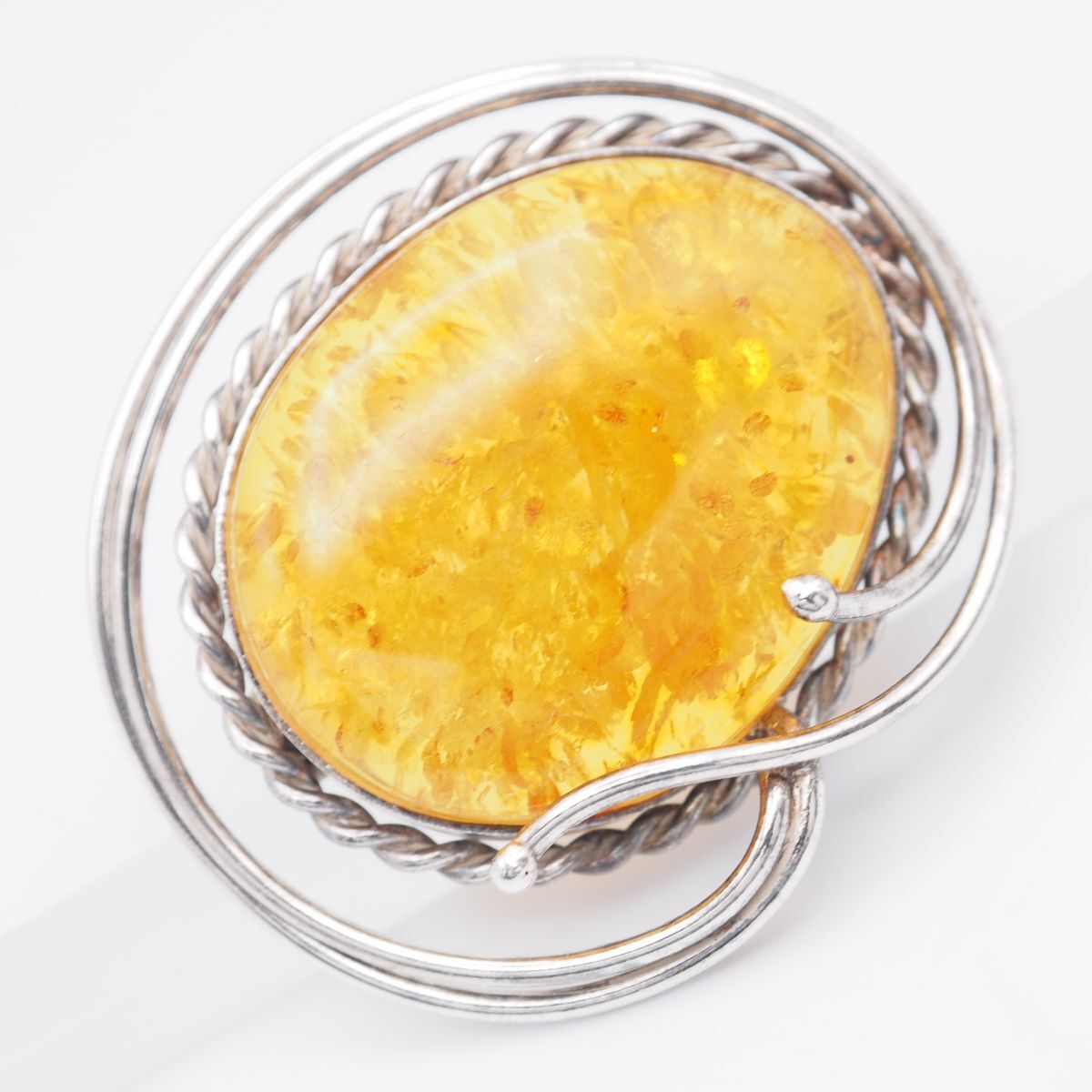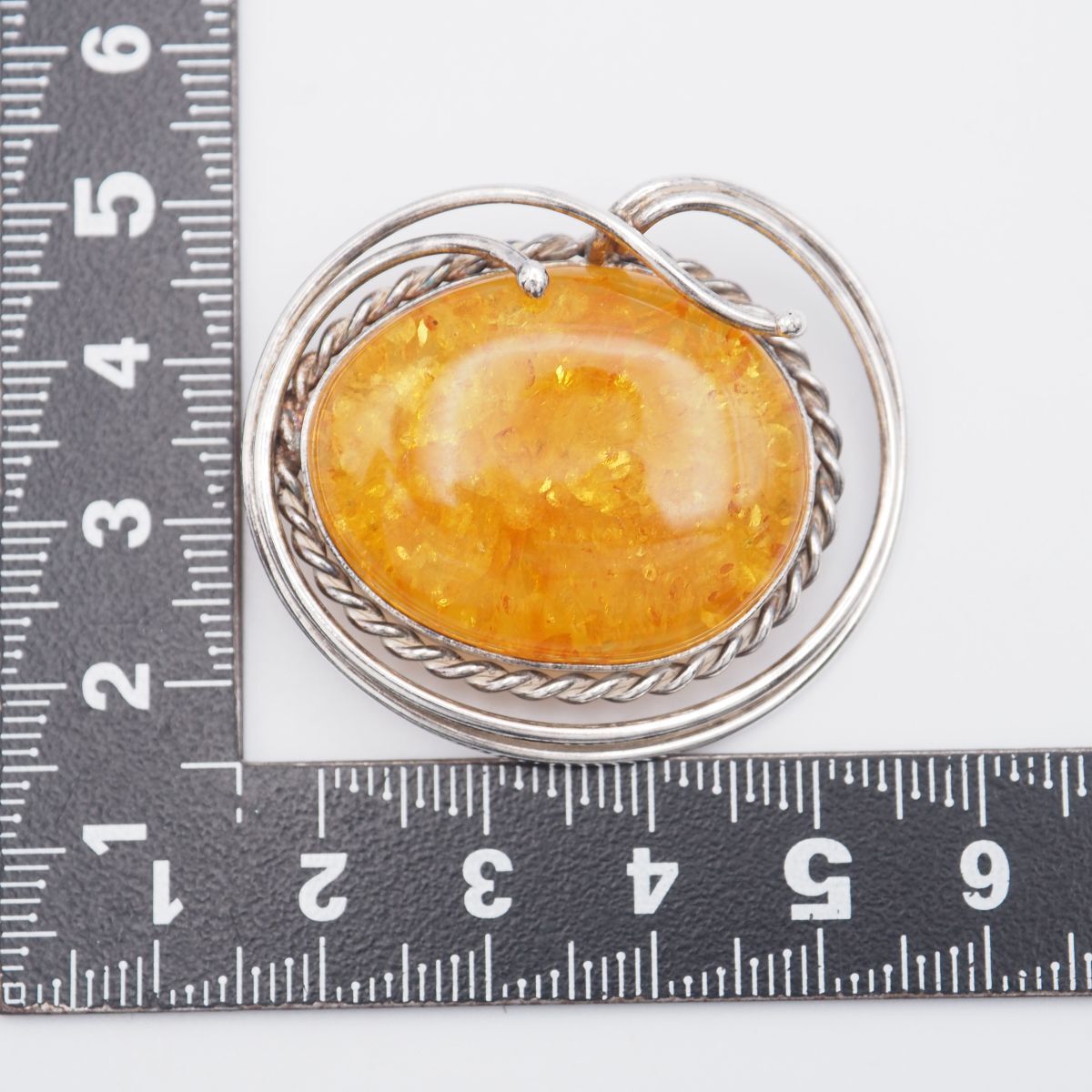 H482 琥珀 コハク アンバー ブローチ デザイン シルバー