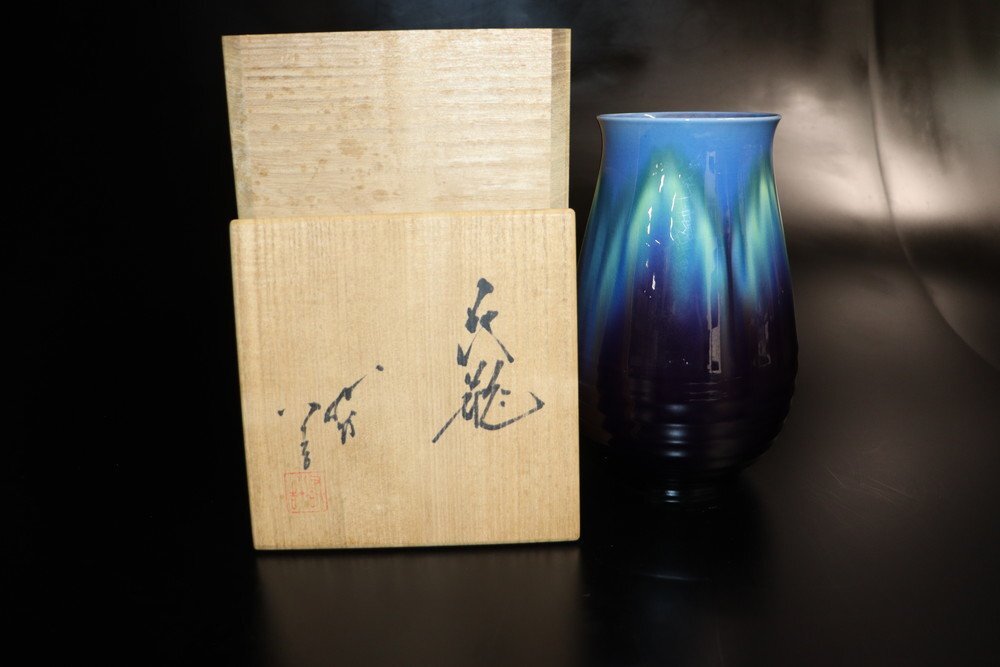 | 商品名 | 【江】九谷焼 人間国宝 三代 徳田八十吉造 碧明紬花瓶 直径12㎝×高さ20㎝ 在銘 共箱 古美術品(花器花生花入飾壺)X1951 LTDBdiui |