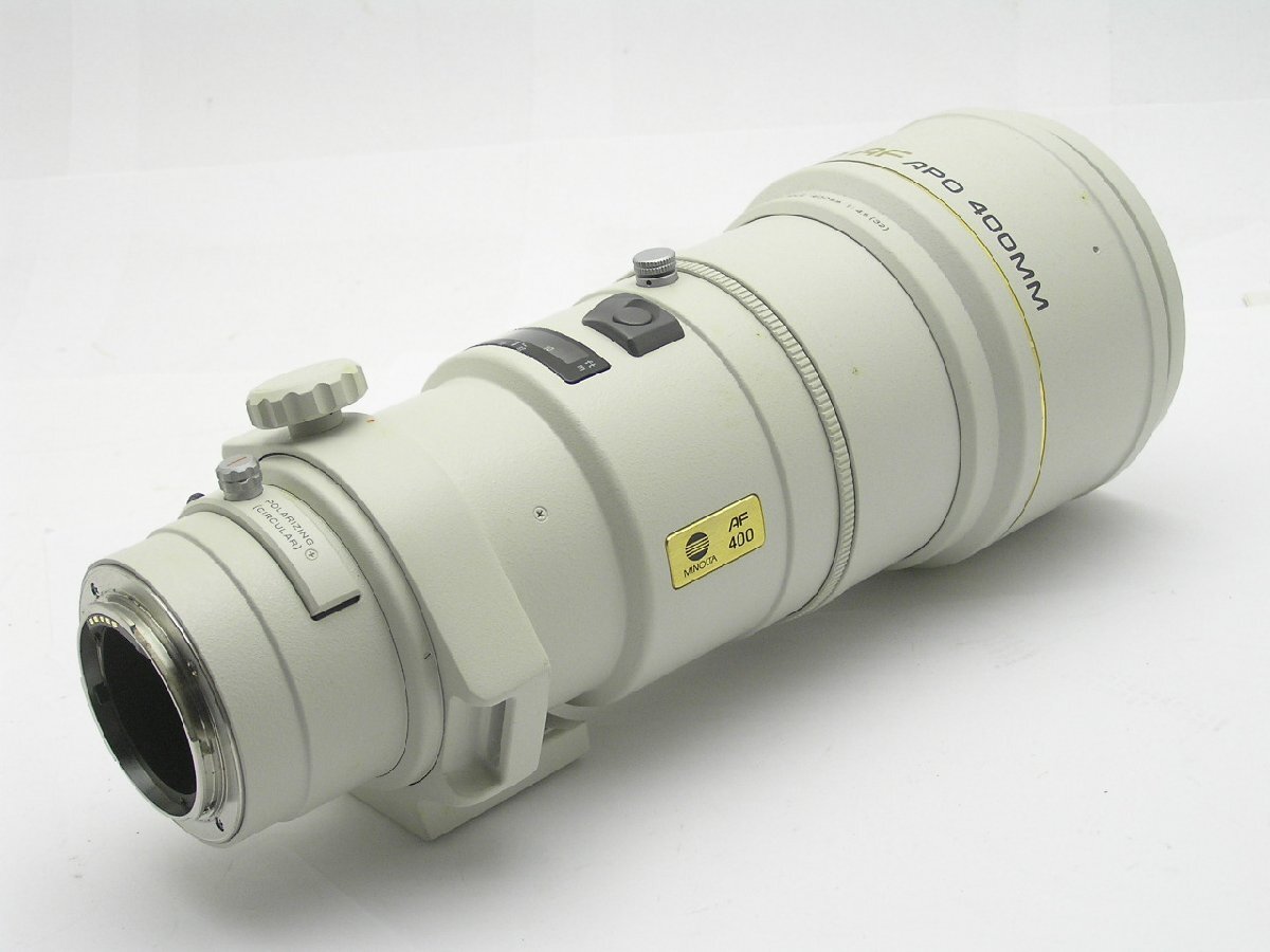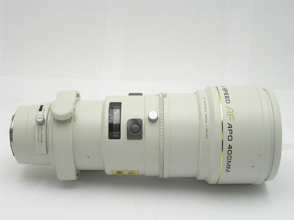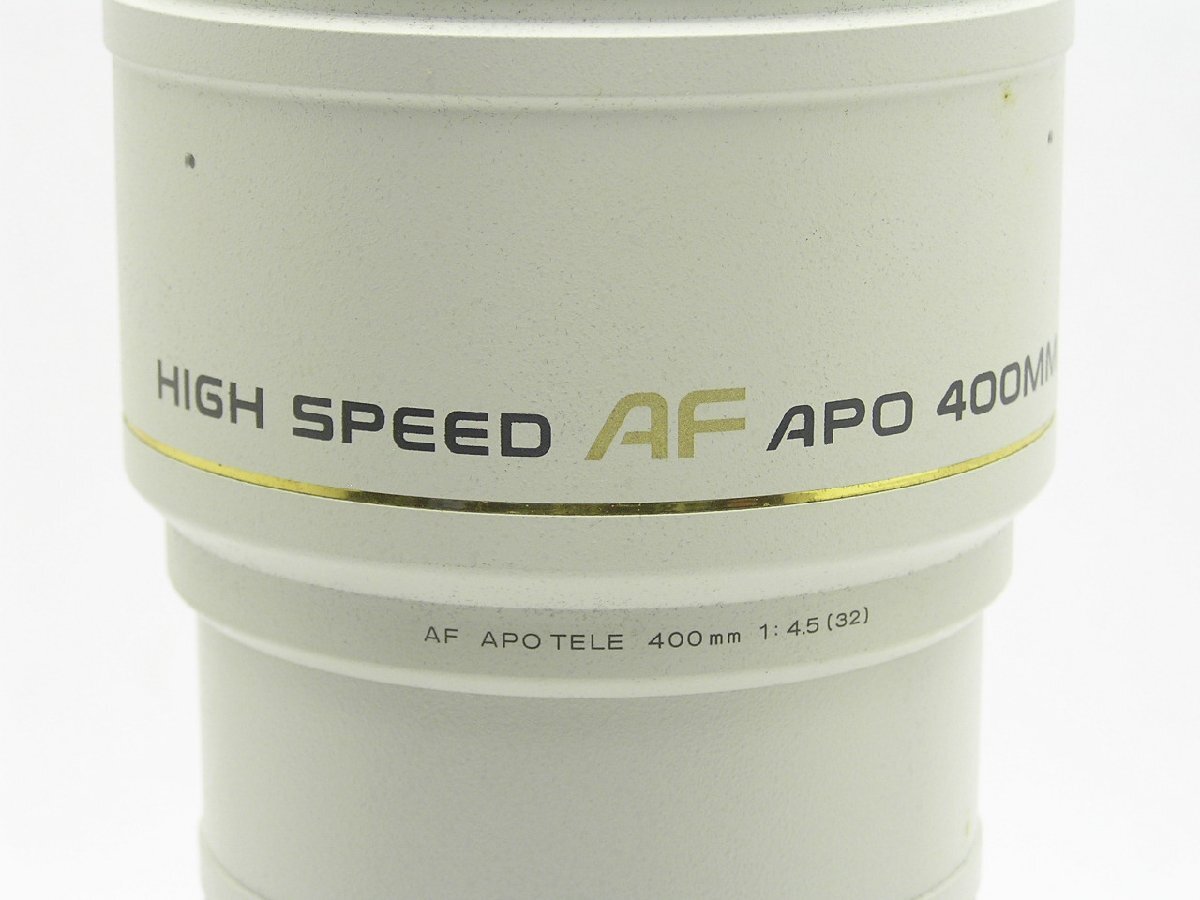 商 品 名 | 9079ミノルタ MINOLTA AF APO TELE 400mm F4.5 No.34501133 フード.PLフィルター.アルミケース付 カビ有 AF迷いあり |