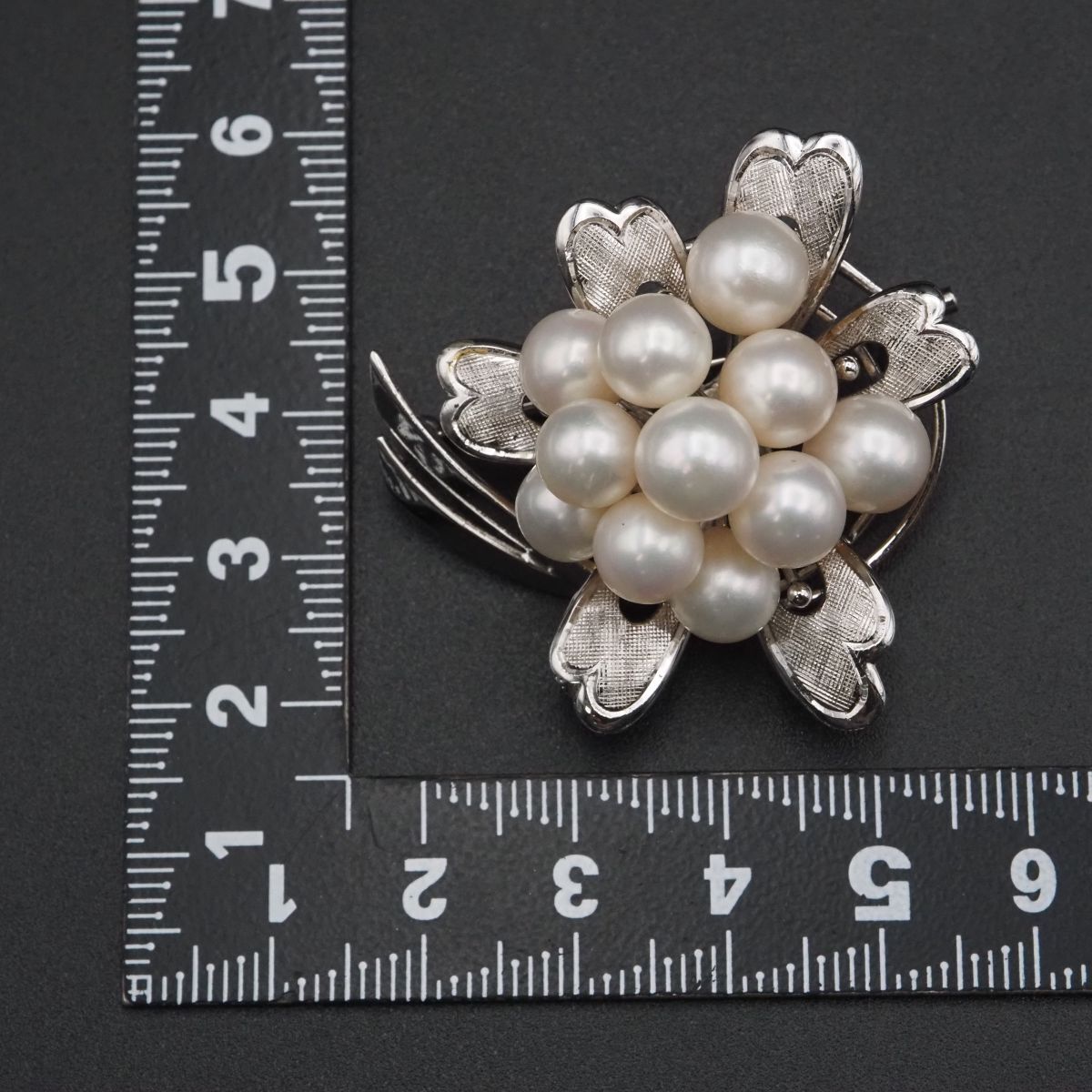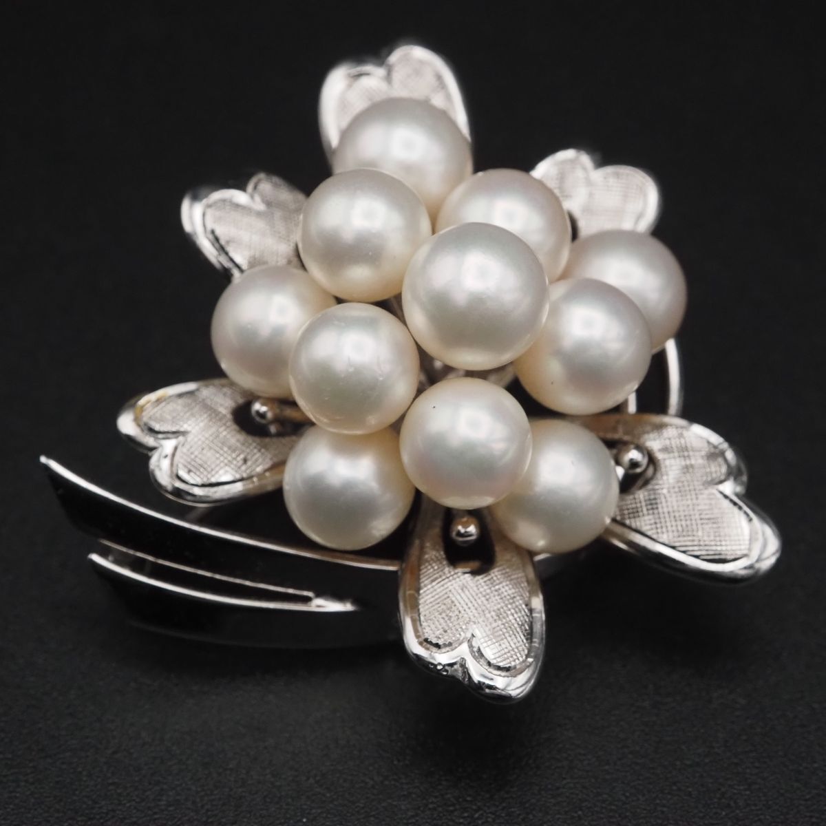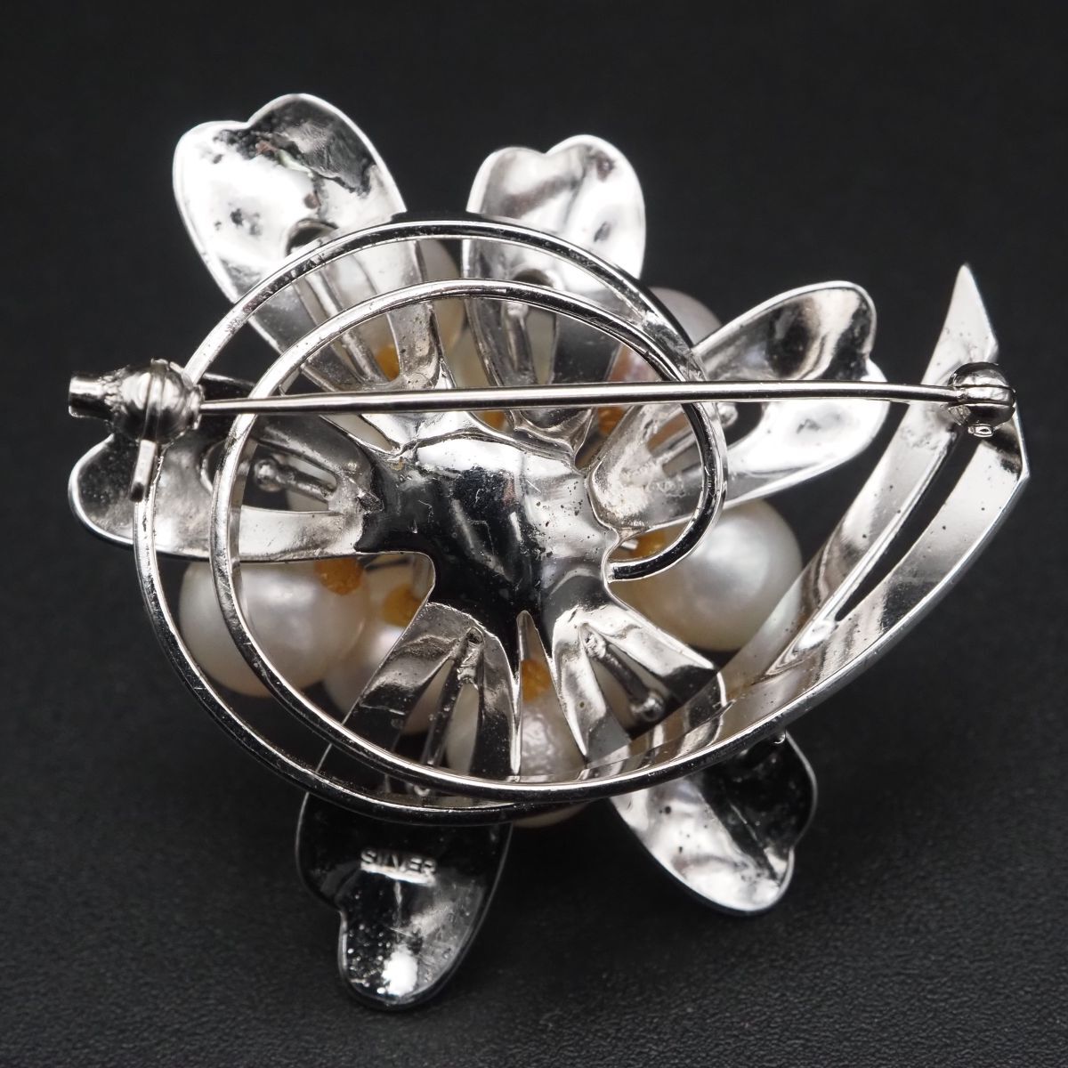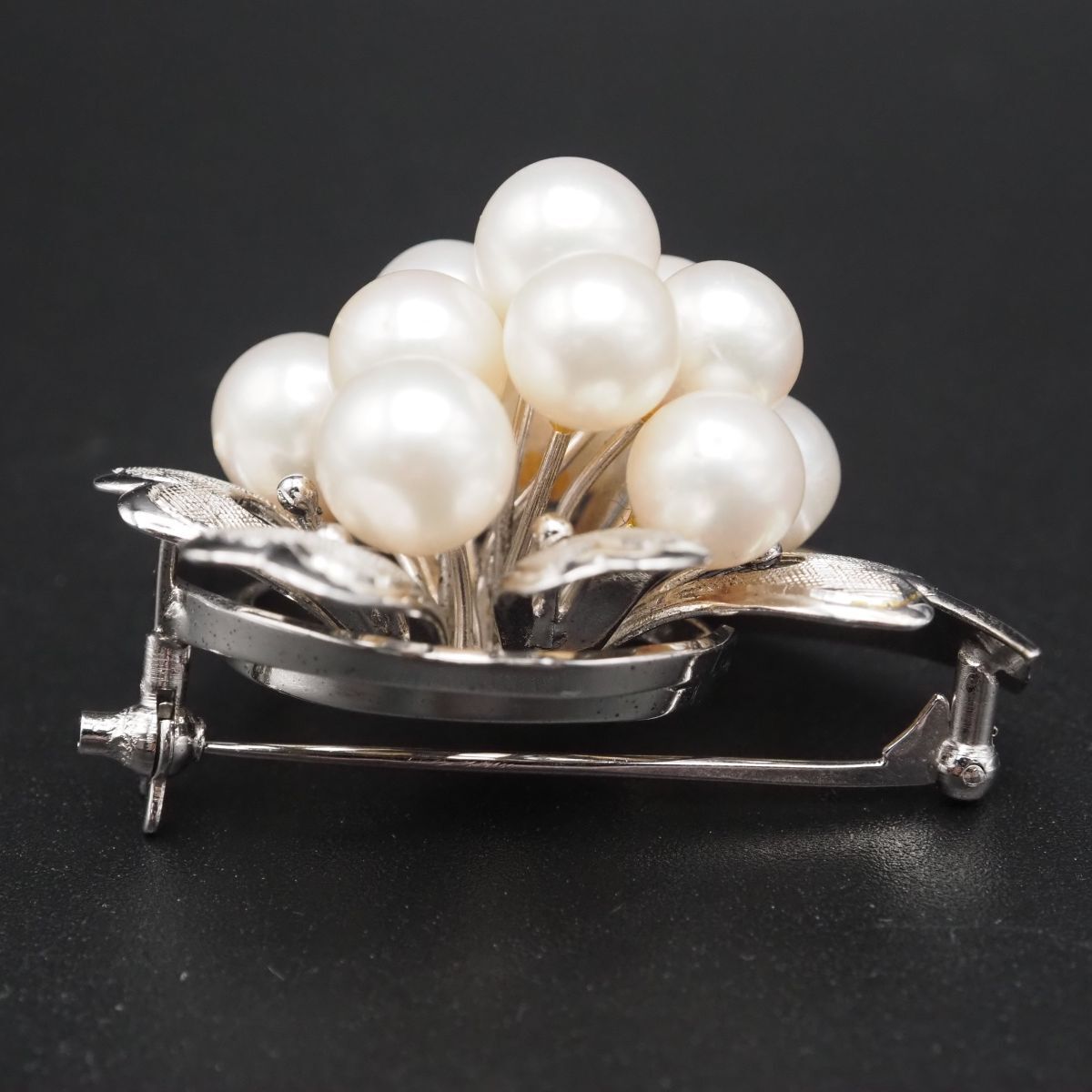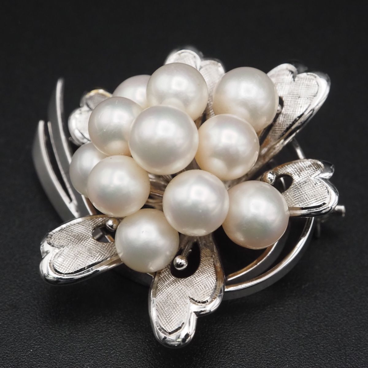 H234 本真珠 7.2-8mm11珠 パール SILVER刻印 ブローチ デザイン シルバー コサージュ 6月誕生石