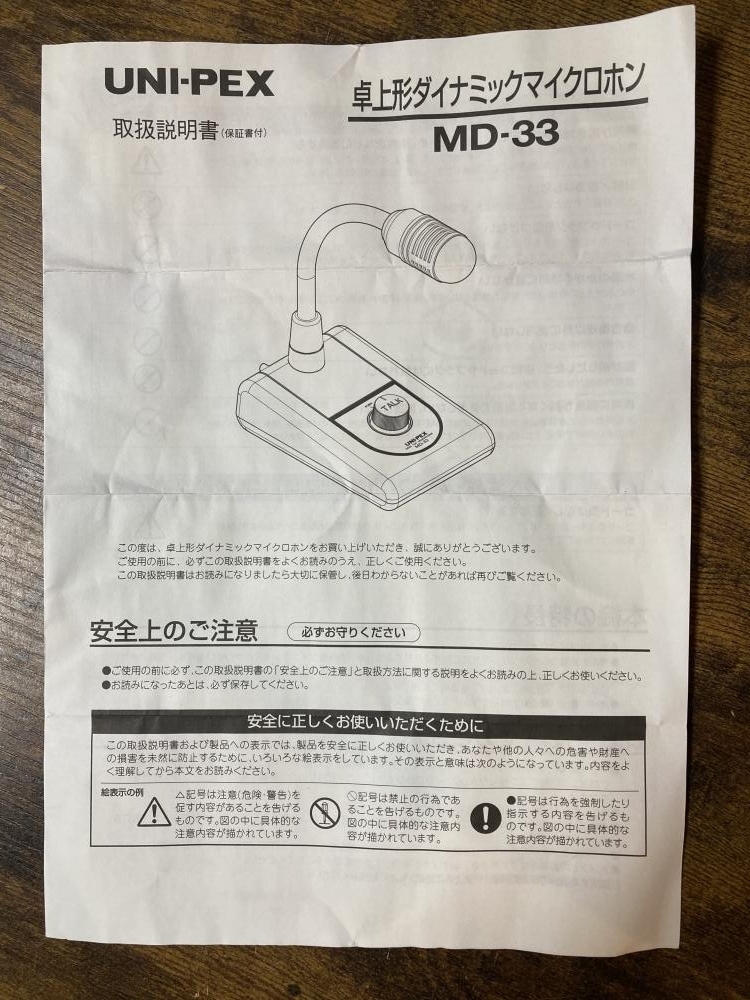 ユニペックス ■商品名 卓上型ダイナミックマイク ■型番 MD-33 |