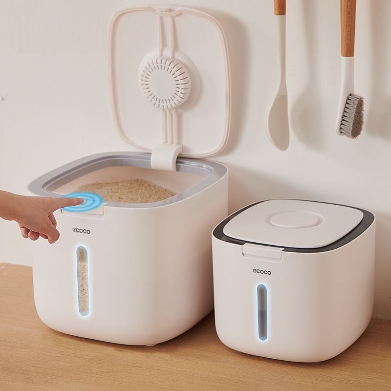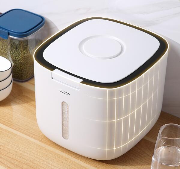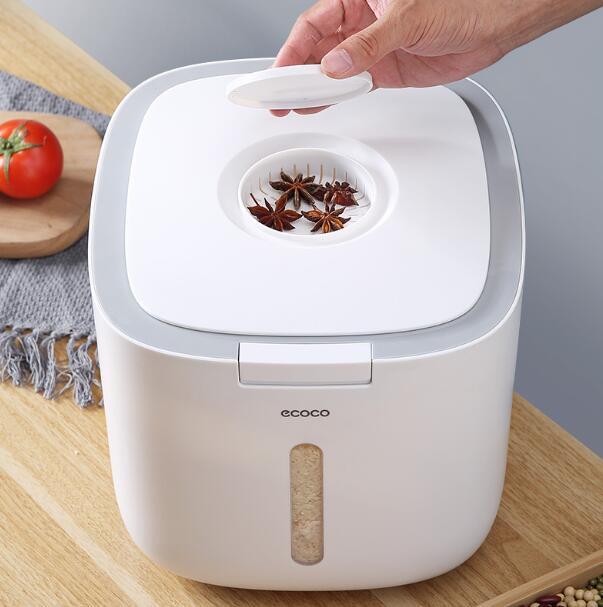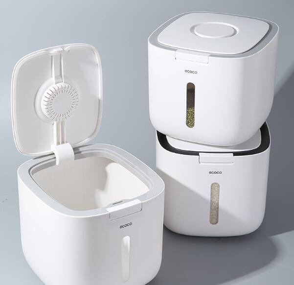 大人気高品質袋ごと米びつ 密閉 段々米計量 10kg カップ付き 米櫃 収納 保存容器 台所 ライスストッカー 穀物 ワンボタン式 グレー