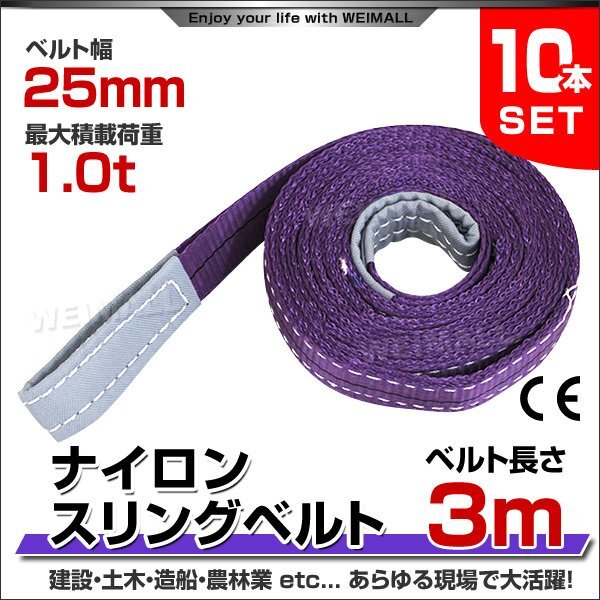 | お得な10本セット ヨーロッパの工業規格である「CEマーク」を取得したスリングベルトです。両端アイ型 ポリエステル100% 建築・造園・造船・荷役業など、さまざまな現場で大活躍! |