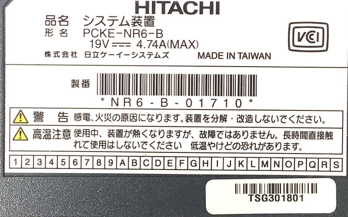 S7103092 HITACHI システム装置 PCKE-NR6-B 1点 (CPU 不明/メモリ 不明/SSD 不明)【通電OK、現状お渡し品】