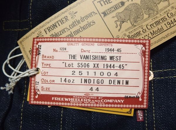 | <商品名> FREEWHEELERS フリーホイーラーズ THE VANISHING WEST Lot S506XX 1944-45 大戦モデル デニム ジャケット Gジャン 44 リジッド <サイズ> 44 <詳しい寸法> 肩幅54身幅62.5着丈68.5袖丈67.5(単位:㎝) ぐらいです。 <商品状態> 未使用でタグが付属します。個人保管のため細かなスレがございますがので展示品程度とお考え下さい。未洗いのため洗濯に伴い縮みがでます。 <商品説明> Lot S506XX 1944-45