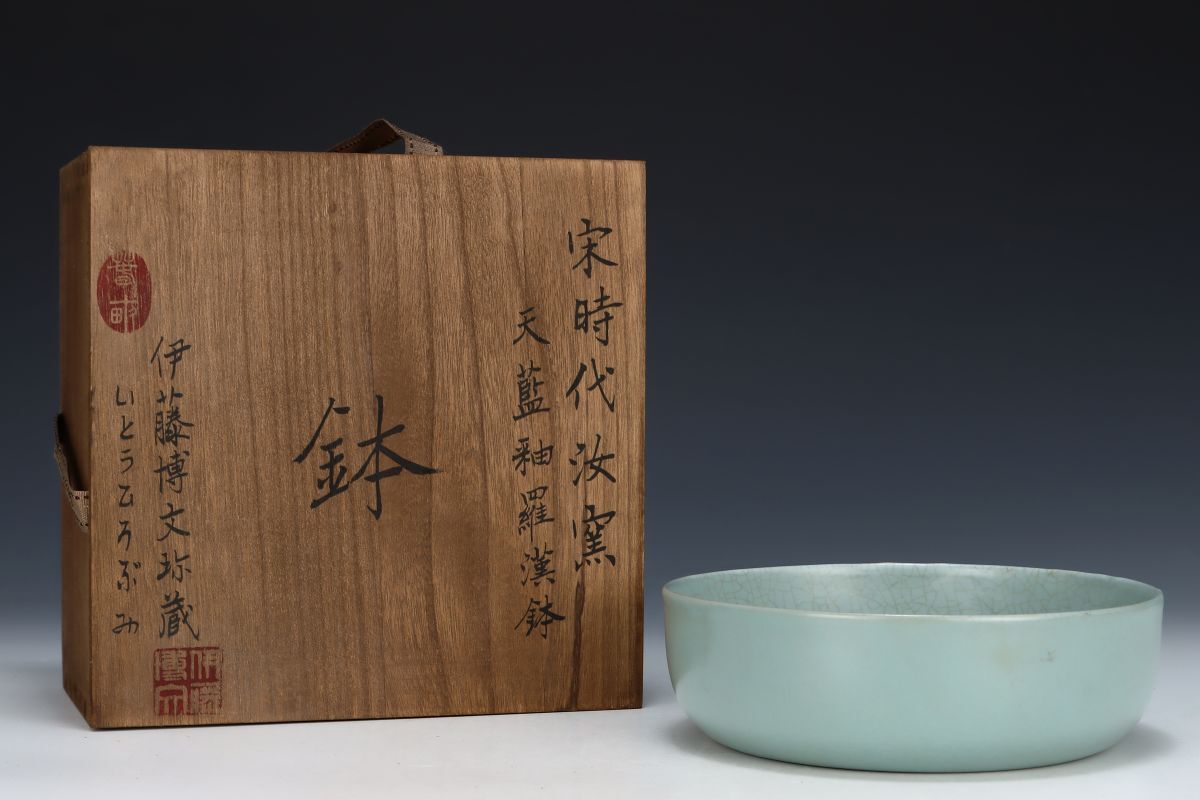 【永】宋時代 汝窯 天藍釉羅漢鉢 古陶磁器 陶芸 皿 中国陶瓷器 唐瓷 置物擺件 古美術品 古賞物 収集 旧家蔵出 中国唐物 A261