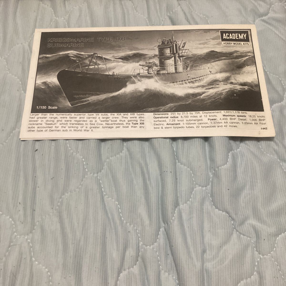 1/150 アカデミー ドイツ海軍UボートIXB【浮沈装置付きモーターライズ】です。製作しないため出品致します、モーター付きです。浮沈しながら航送出来るモデルです。写真のように未組み立てで部品は未開封で全てあります。発送につきましては落札者様ご負担のヤマトおてがる配送80サイズにて発送致しますので宜しくお願い致します。