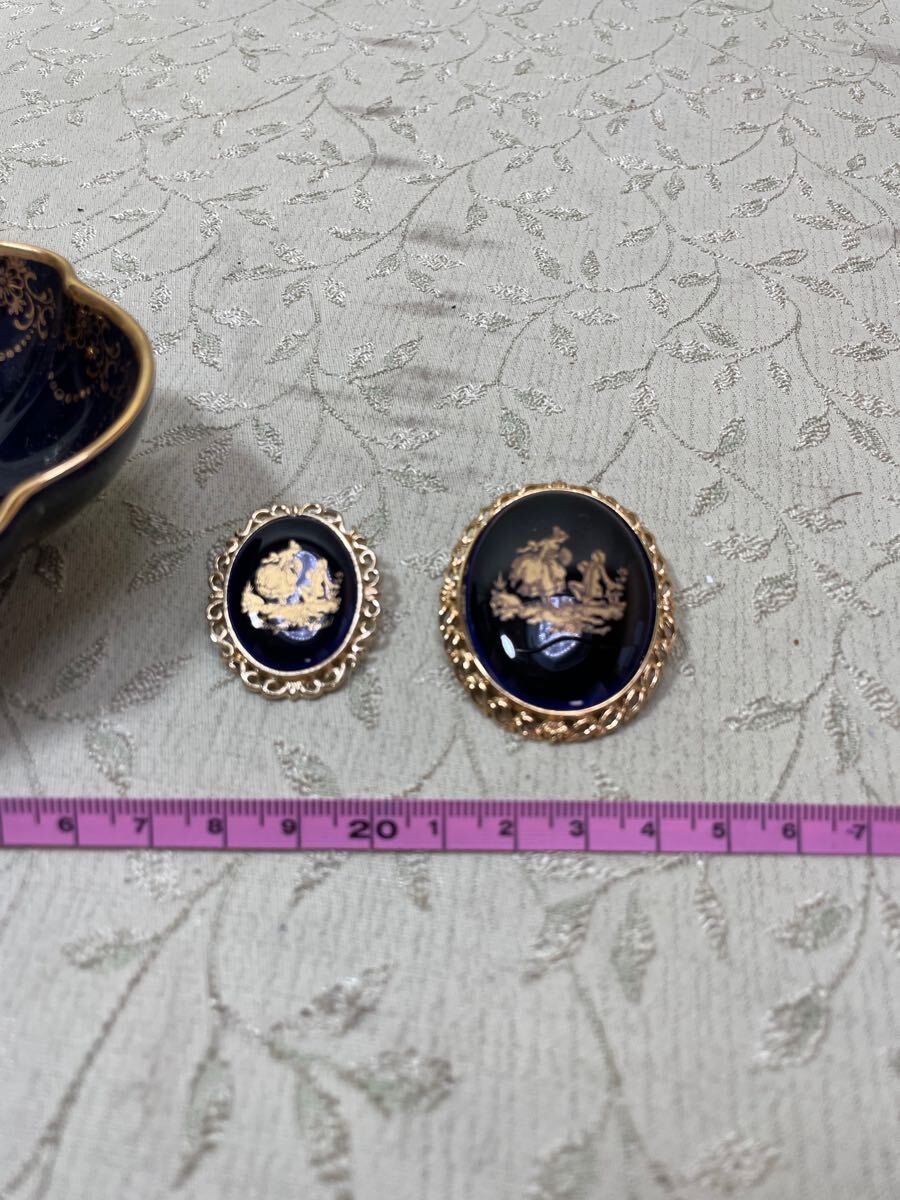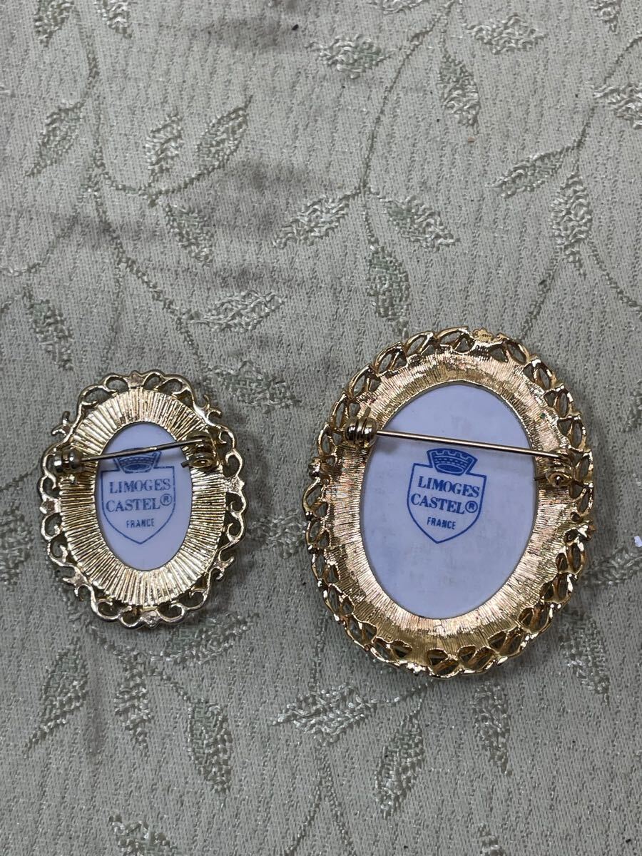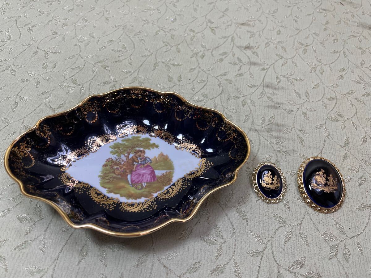 | ★(B-6) LIMOGES CASTEL リモージュ トレイ ブローチ 2点 金彩 アクセサリー アンティーク 雑貨 [60] | |||