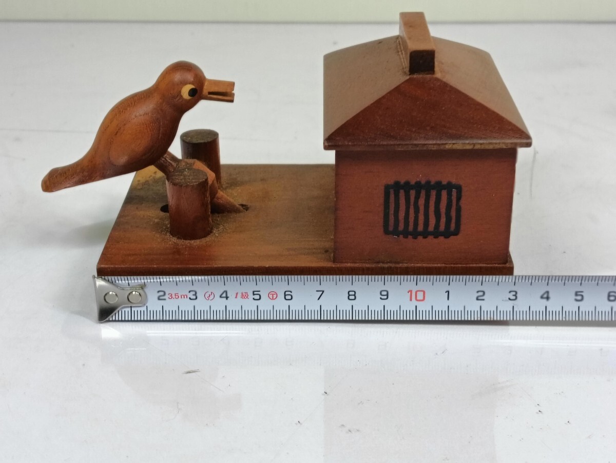 ・動作:鳥の頭を押すと、くちばしで楊枝を1本持ち上げるギミックの動作確認済みです(画像を参照)。