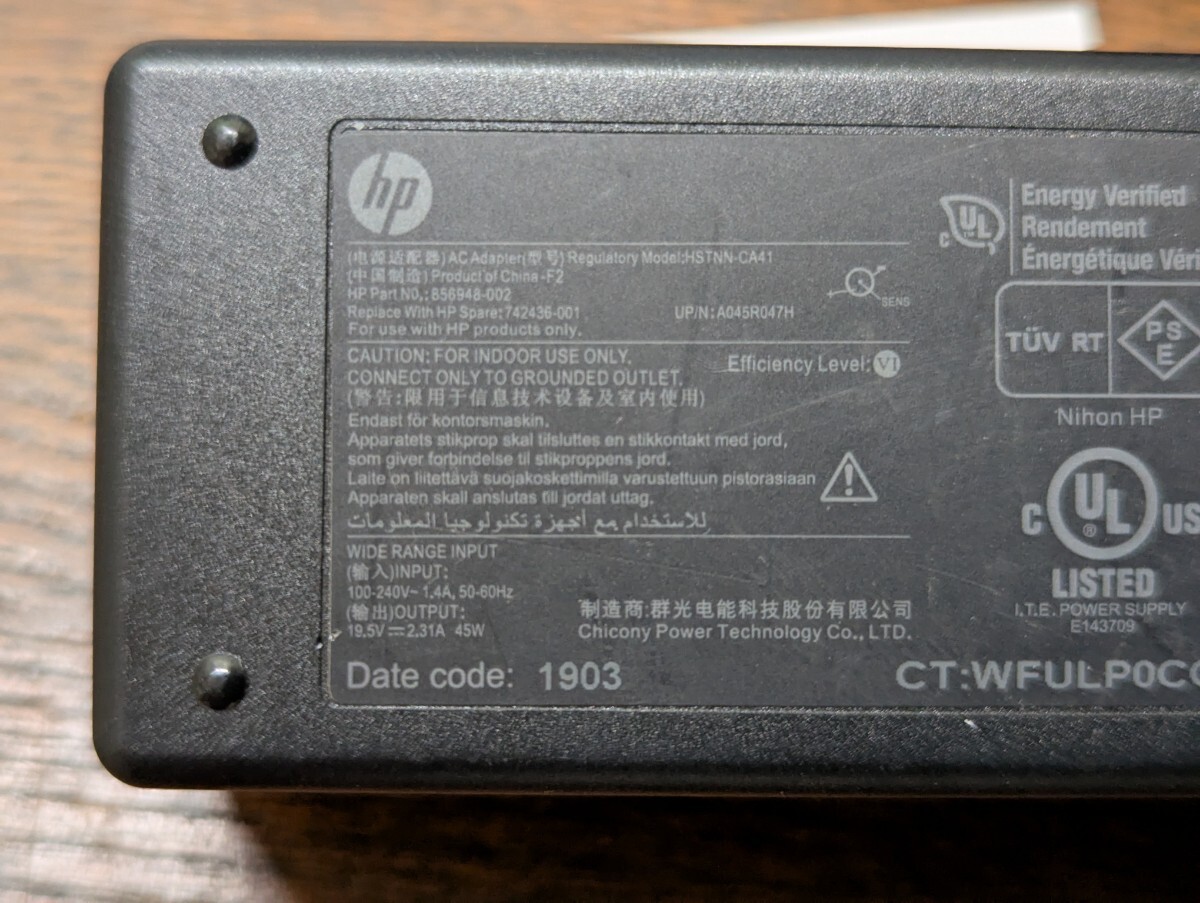HP 純正45w Adapter /19.5v 2.31A / コネクタ-4.5㎜