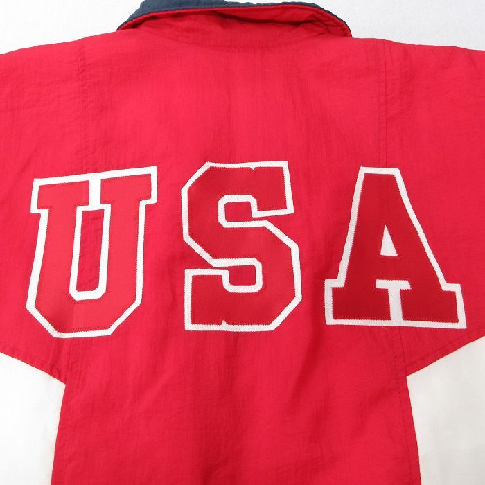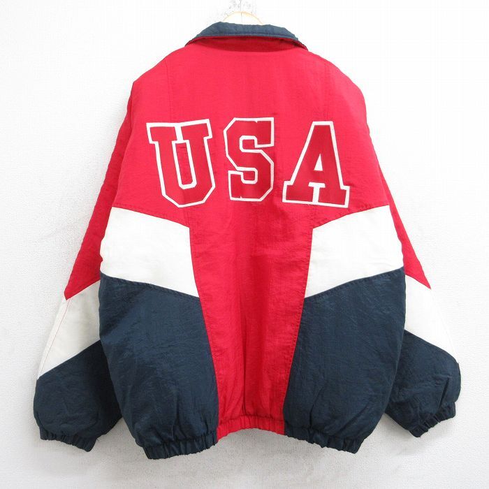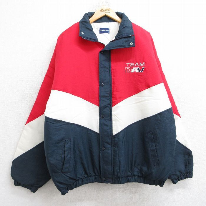 【商品名】 XL★古着 ホロウェイ 長袖 ナイロン ジャケット メンズ 90年代 90s USAロゴ DAV マルチカラー USA製 赤他 内側キルティング【spe】