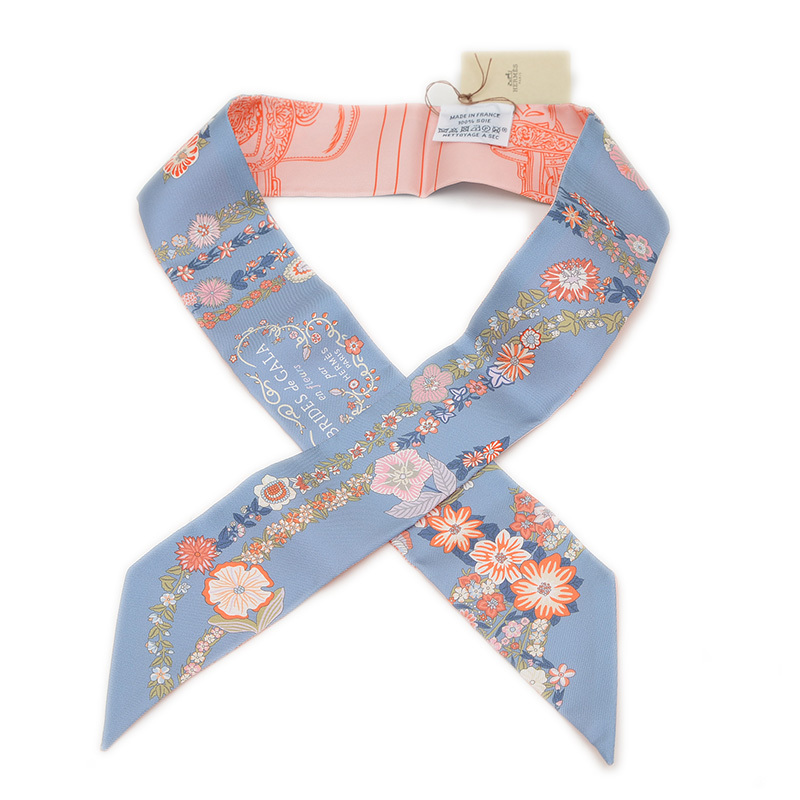 | 商品特徴 | スリムなシルクツイル製のスカーフです。馬具のデザイン「ブリッド・ドゥ・ガラ」に、アイライナーで描かれたような繊細な花柄が融合した、遊び心とエレガンスが光るデザインが特徴。鮮やかなマルチカラーの配色が、バッグのハンドルや首元に華やかさを添え、装いに上品な彩りを加える逸品です。 |