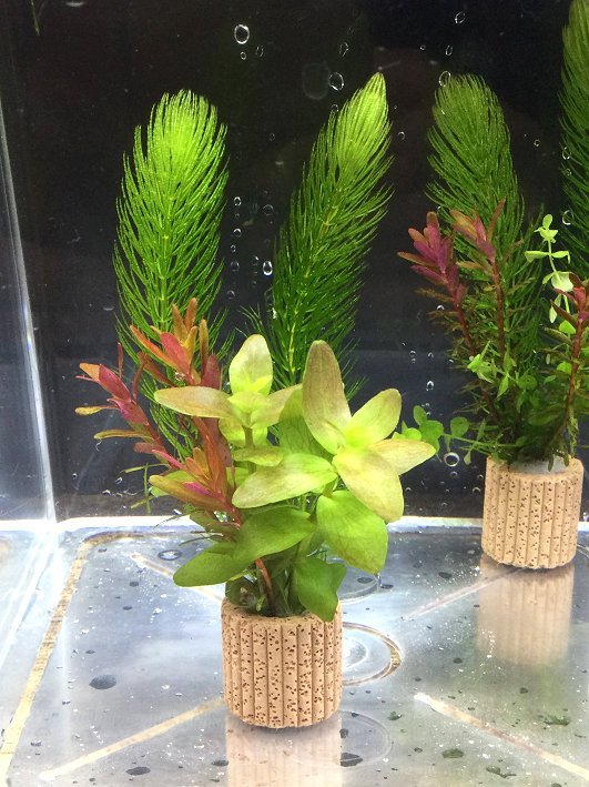 吸着系多孔質ろ材に水草を3種類寄せ植えしたもの3個セットです。