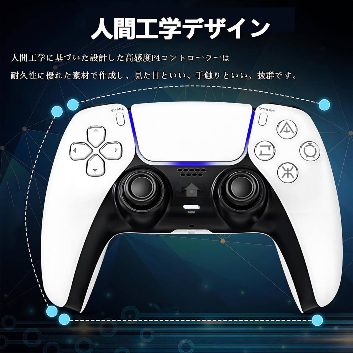 【高品質素材&軽量設計】人間工学に基づいた設計した高感度P4コントローラーは、耐久性に優れた素材で作成し、見た目といい、手触りといい、抜群です。ゲームパッドの両端は滑り防止シリコンを付いています、手汗による滑りを防ぐためにつや消しになっています、肌に優しいタッチです。長時間の握り心地が快適で、ゲーム体験が向上します。重さわずか320gで、軽く、グリップ型で持ちやすく、長時間でも快適にプレイできるワイヤレスコントローラーです。家でもパーティーでも、友達とゲームをしてゲームの楽しさを味わうことができます。