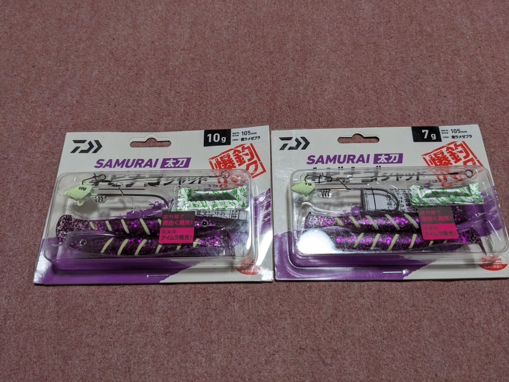 ダイワ サムライ太刀 キビナゴシャッド 爆釣パック 2セット 10g 7g 紫ラメゼブラ 新品2 SAMURAI ワインド タチウオ 太刀魚