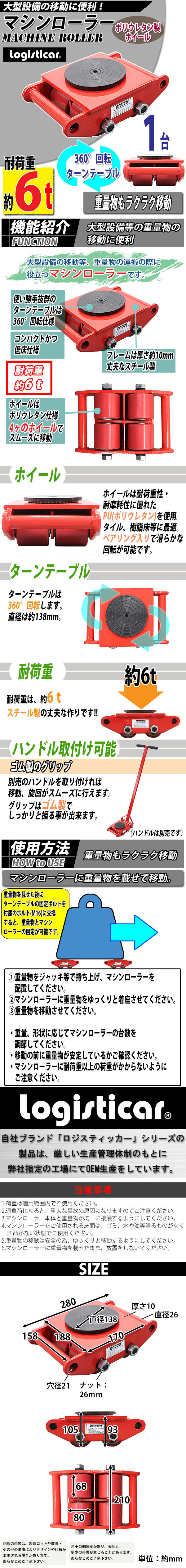 | 商品名 | 送料無料 マシンローラー 耐荷重約6t ポリウレタン製ホイール 1台 単品 360° ターンテーブル 回転台 運搬ローラー 運搬マシンローラー 重量物 低床 ポーター 赤 コロ車 ウレタンローラー 搬入 搬出 運搬車 台車 キャリー マシーン ローラー 引越 RED レッド roller6tp1 |