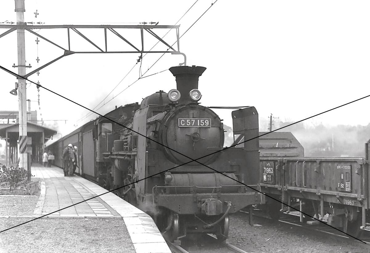 レア№!C57-159〔佐〕+PC-総武房総線=昭和40年代のSLモノクロネガ35mm1コマ#32A32B/佐倉駅/330レ/S44.2.2/著作権譲渡証明書=有り