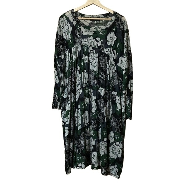 ズッカ ZUCCA サイズM - 黒×グリーン×ライトグレー レディース 長袖/ひざ丈/花柄 ワンピース