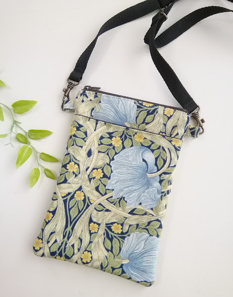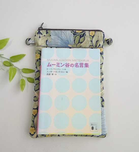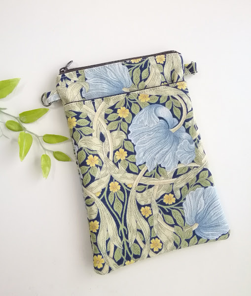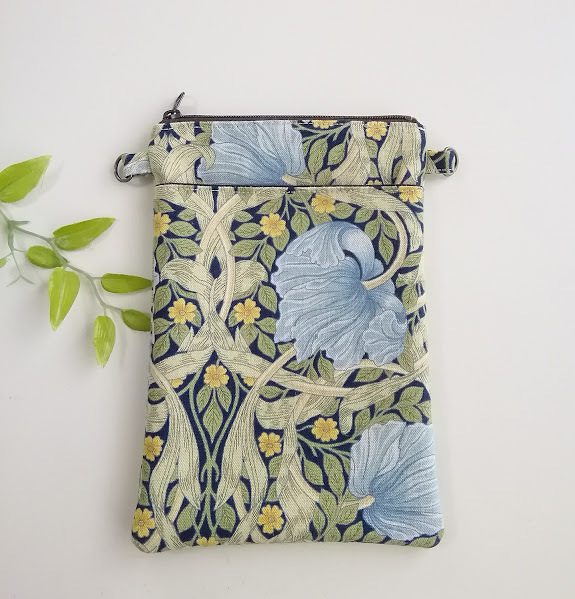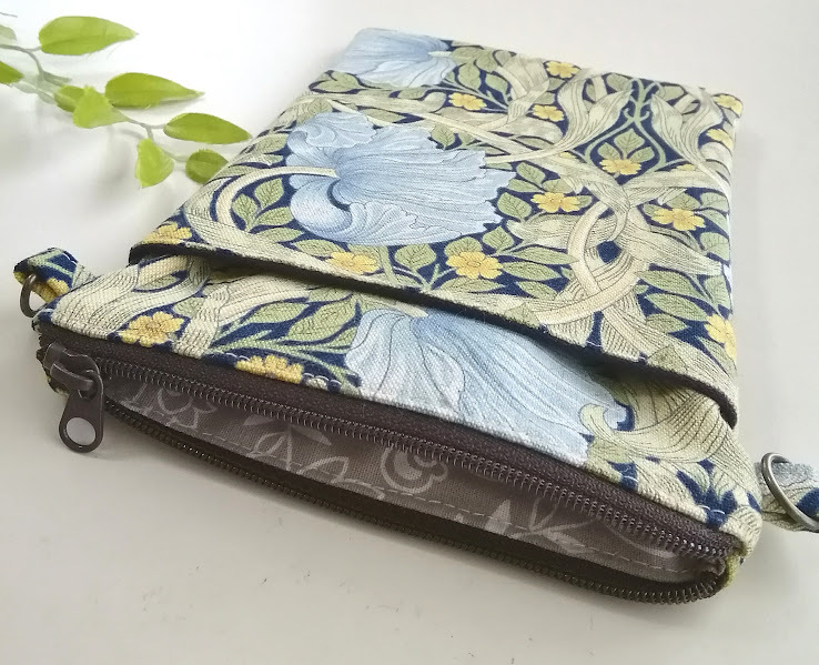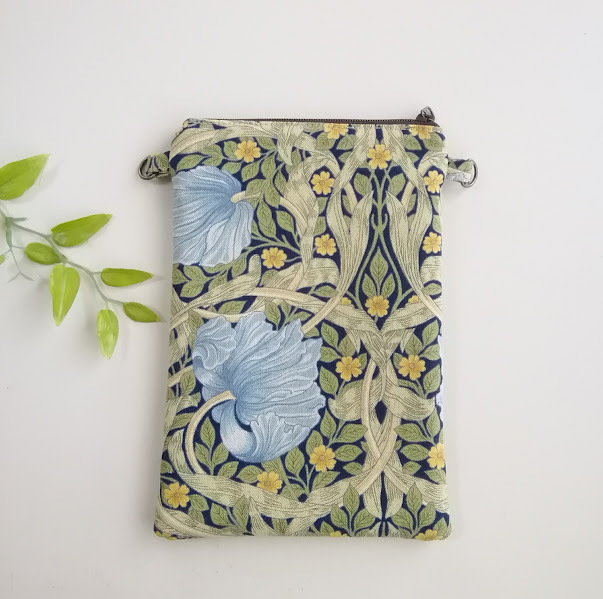 ハンドメイド〈スマホポシェット用〉ポーチ ピンパネル/ V&A ウィリアムモリスの生地を使用 ※外ポケット1コ/ショルダー紐は付属しません