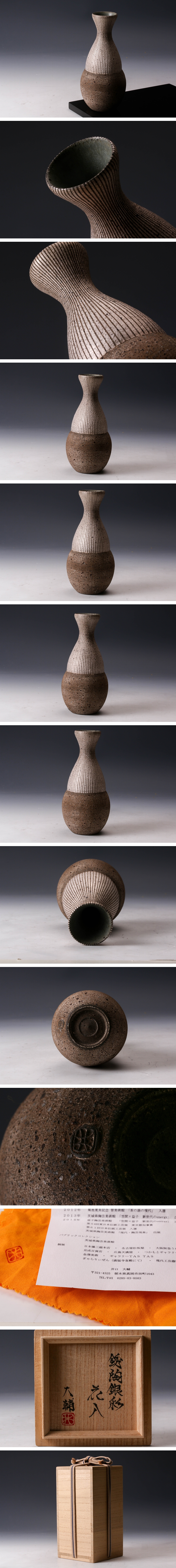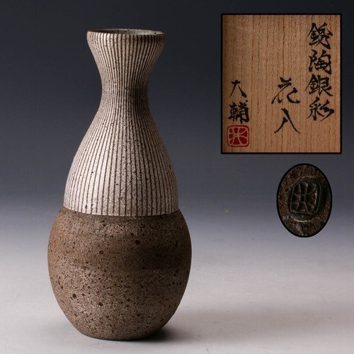 【佳香】井口大輔 銹陶銀彩花入 共箱 共布 栞 本物保証