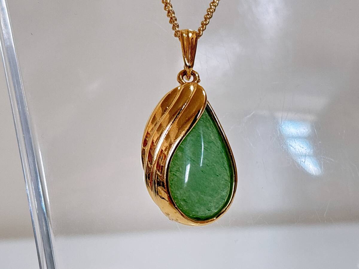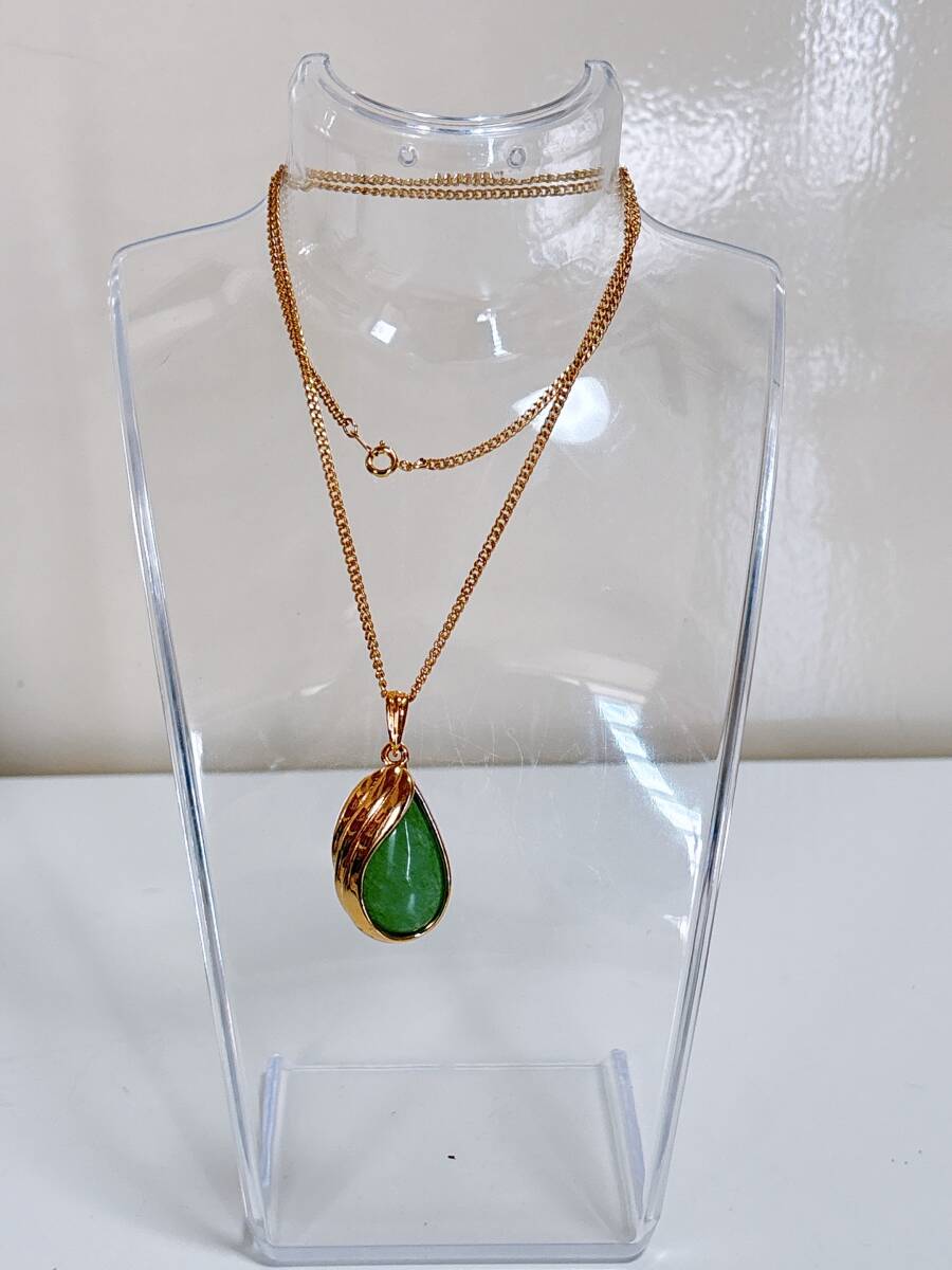 22-2 特大 翡翠 ヒスイ ネックレス ゴールド チェーン 天然石 アクセサリー