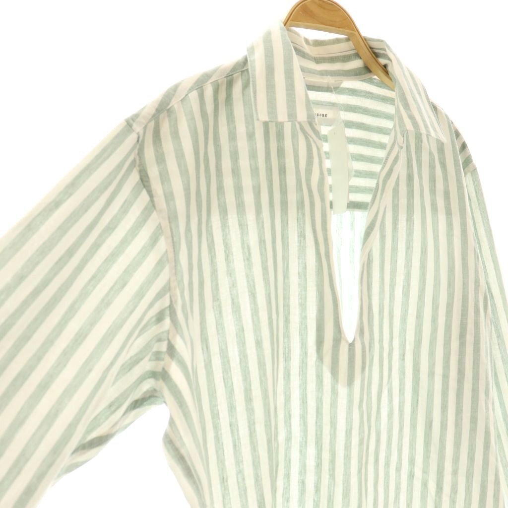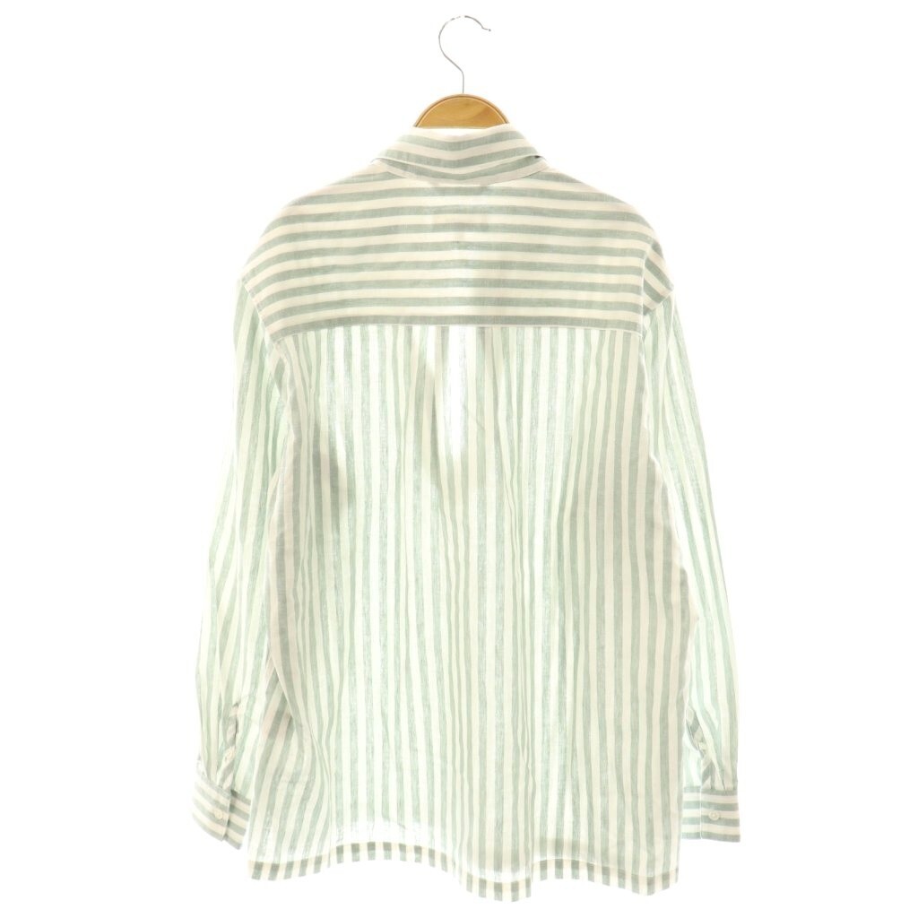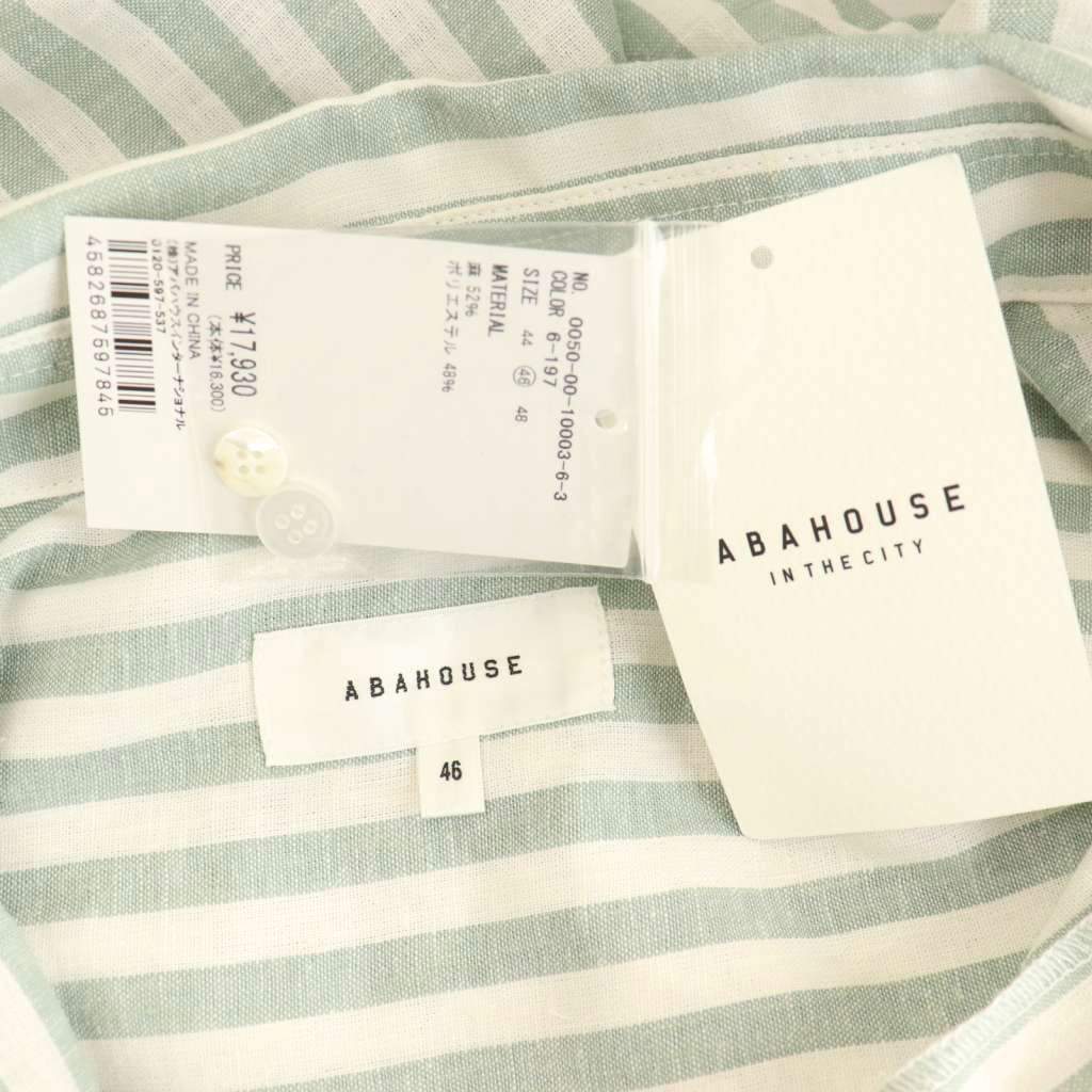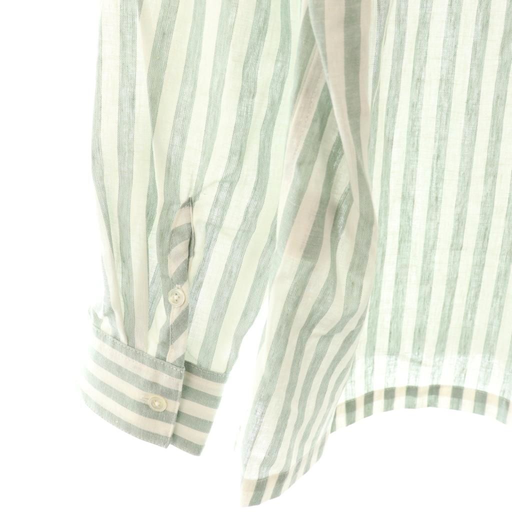未使用品 アバハウス ABAHOUSE リネンブレンド スキッパー プルオーバーシャツ ストライプ 長袖 46 グリーン /HK ■OS ■SH メンズ