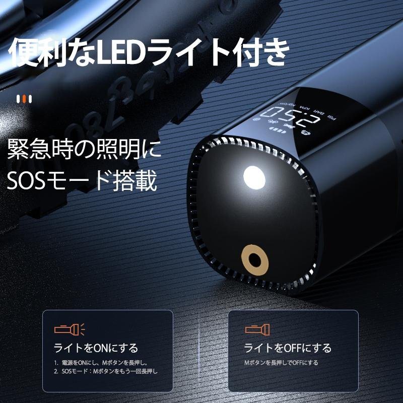 ◆このコンパクトな充電式エアポンプは、圧力を自動的に検出し、目標圧力に達すると自動的に停止します。車、バイク、自転車、ボール、浮き輪など、様々なアイテムに使用できます。さらに便利なLEDライトを装備しており、犯罪の予防や緊急時にも役立ちます。