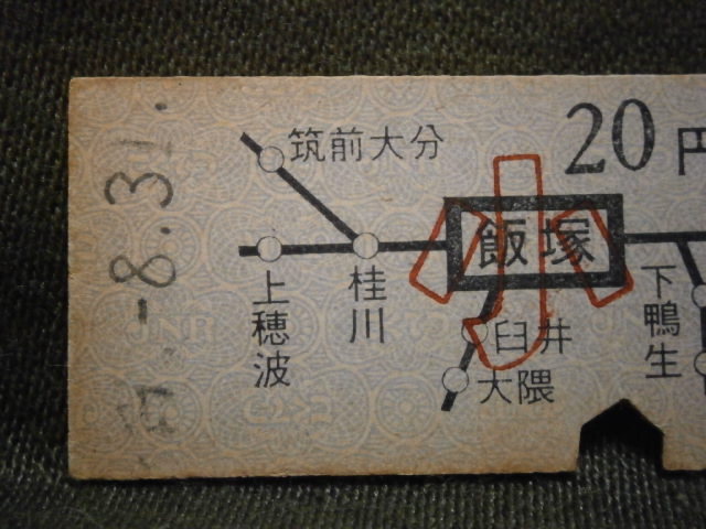 国鉄 飯塚から20円 路線絵入り乗車券 小人用