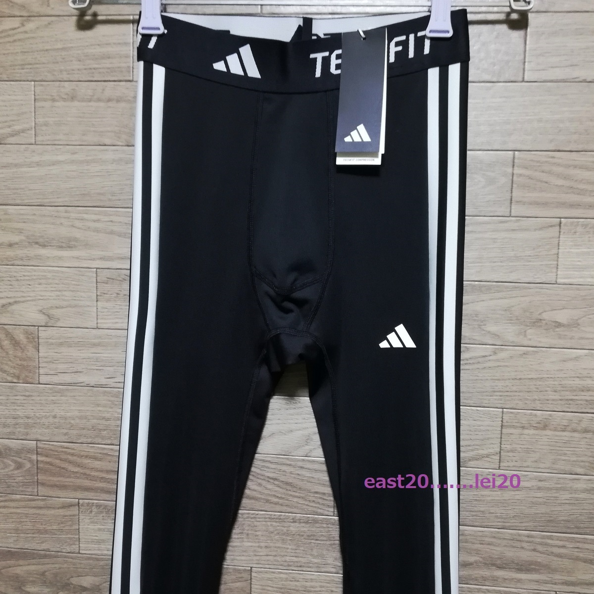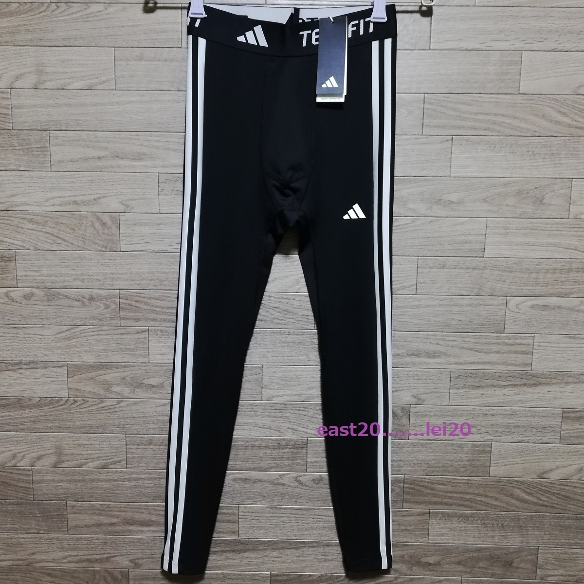 XL 新品 adidas TECHFIT アディダス テック フィット スリーストライプス コンプレッション レギンス タイツ 黒 ブラック 未使用 送料無料
