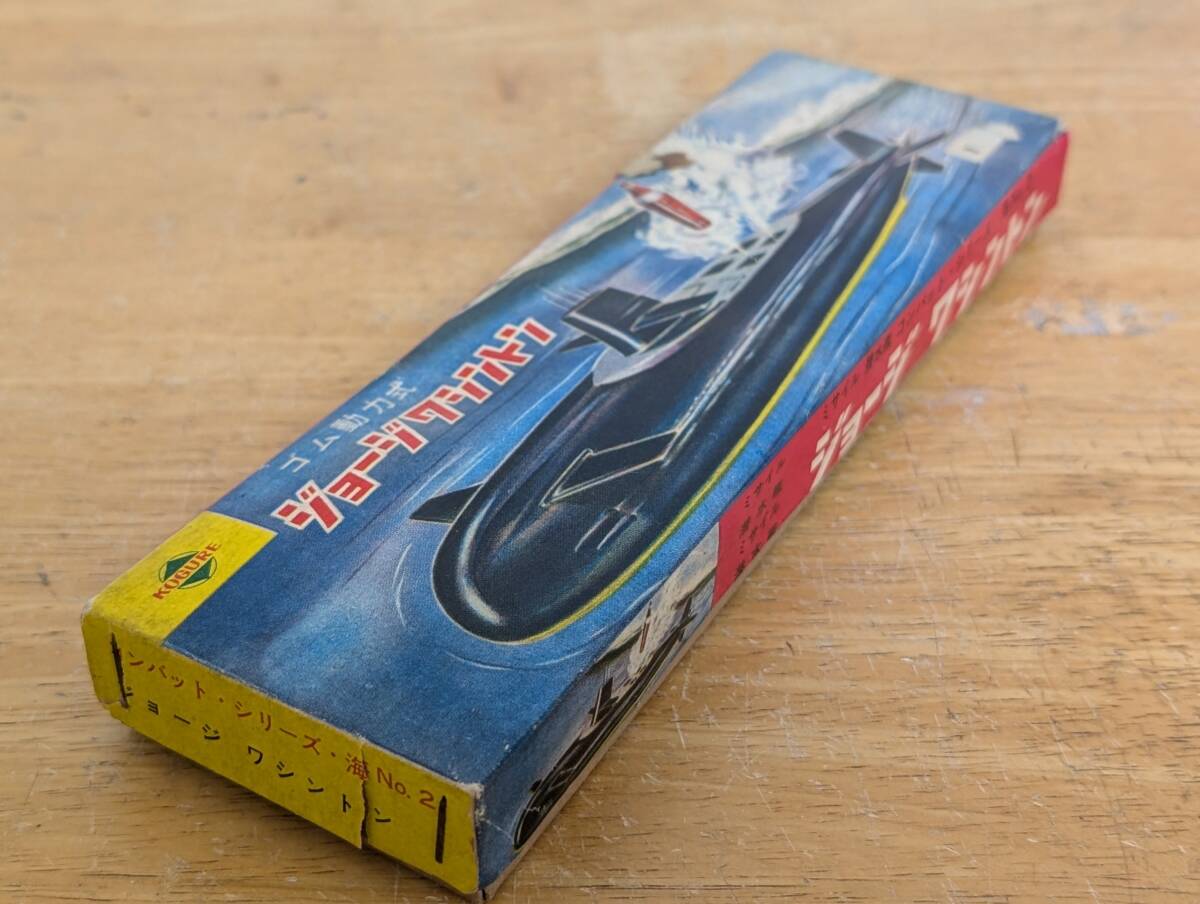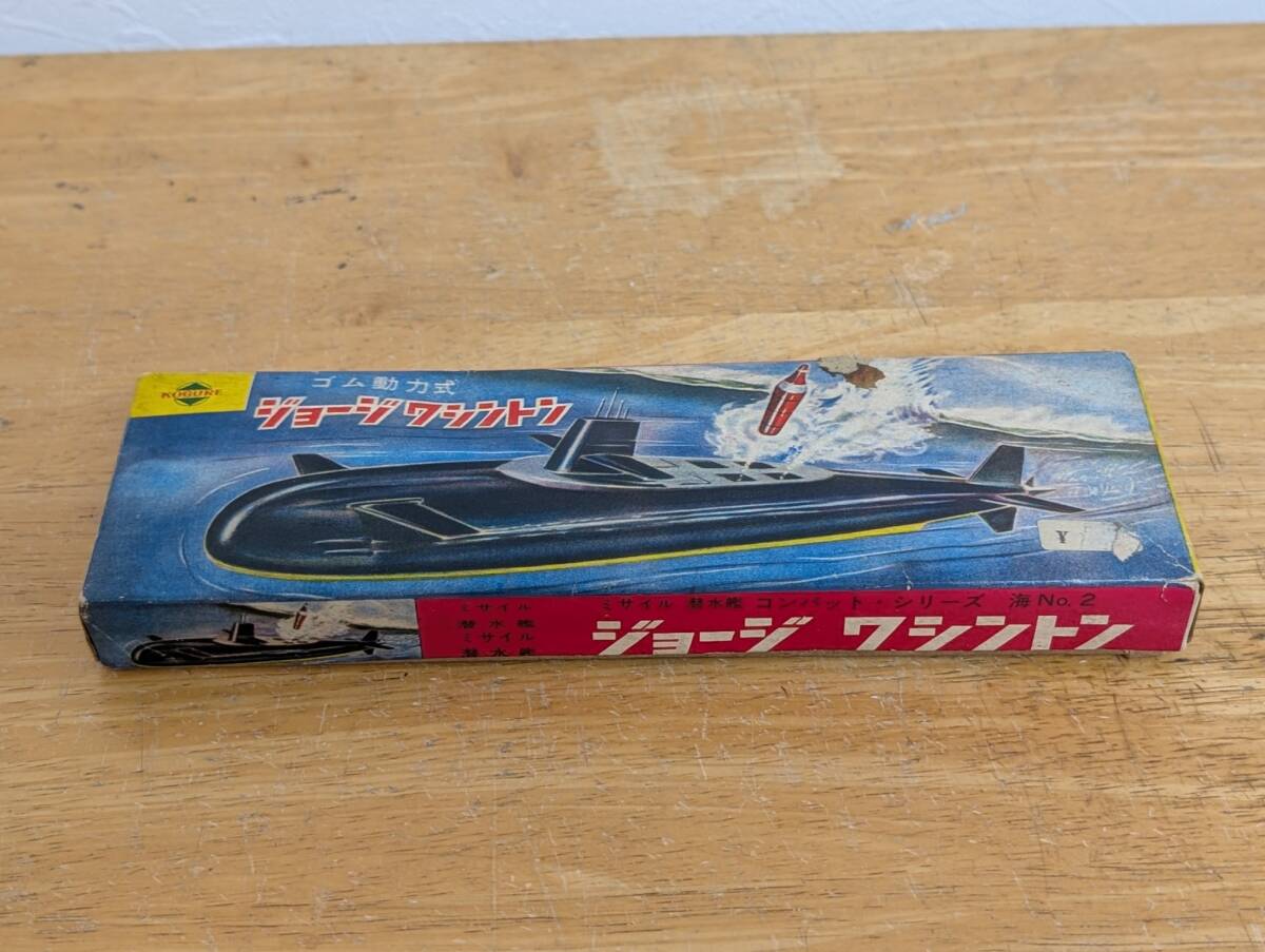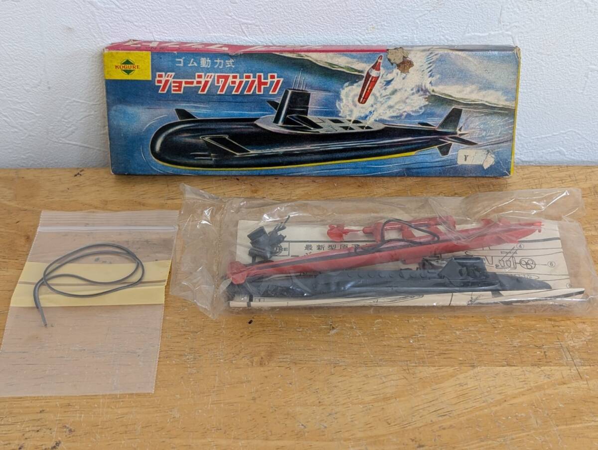 コグレ(約17cm)ジョ―ジワシントン ゴム動力です。箱は汚れ、へこみ、ヤブレあります。袋部品未開封です。ゴムは固まって使用出来ないので別途新しいゴムを付けます。60年近く前まだ小学低学年の頃小遣いで買えたゴム動力の潜水艦プラモは大変人気がありました。欠品があってもご容赦下さい。興味ある方いかがですか。