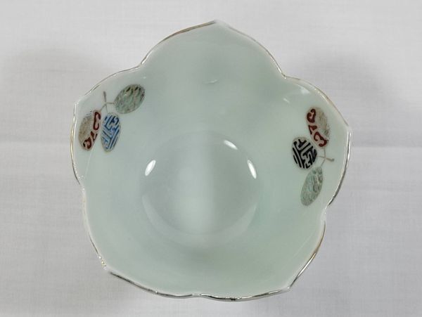 #有田焼 #青白磁 #草花紋 #陶磁器 #染付 #金彩 #和食器 #小鉢 #煮物鉢 #昭和レトロ