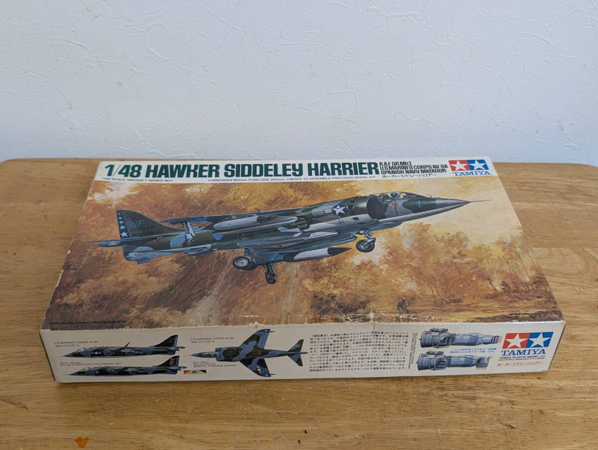 タミヤ1/48 ホ―カ―シドレ―ハリアー です。箱は汚れ、へこみ、キズあります。袋部品未開封です。欠品があってもご容赦下さい。興味ある方いかがですか。