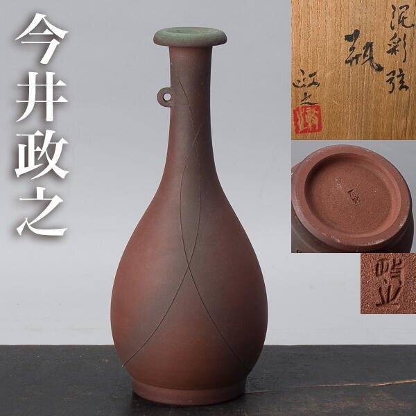 | 今井政之の泥彩弦瓶。共箱有。真作保証。 サイズは、幅約10cm、高さ約23cm。 傷・直しありません。 状態、詳細は画像でご確認ください。 |