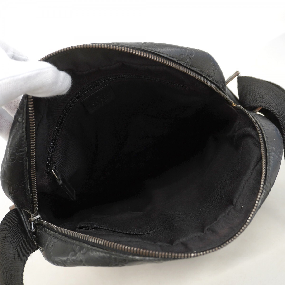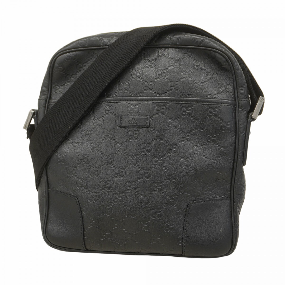 ★最終価格★SALE【5ma0899-h】グッチ ショルダーバッグ グッチシマ 162915 レザー ブラック シルバー金具【中古】メンズ