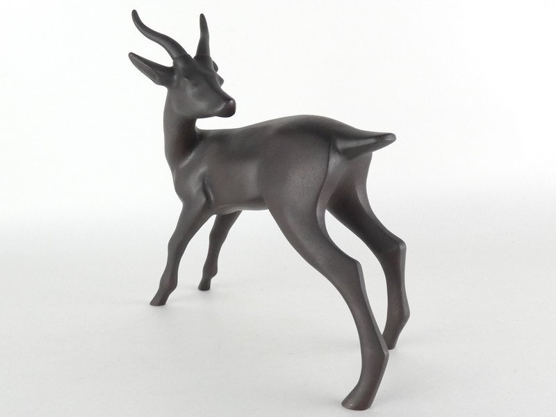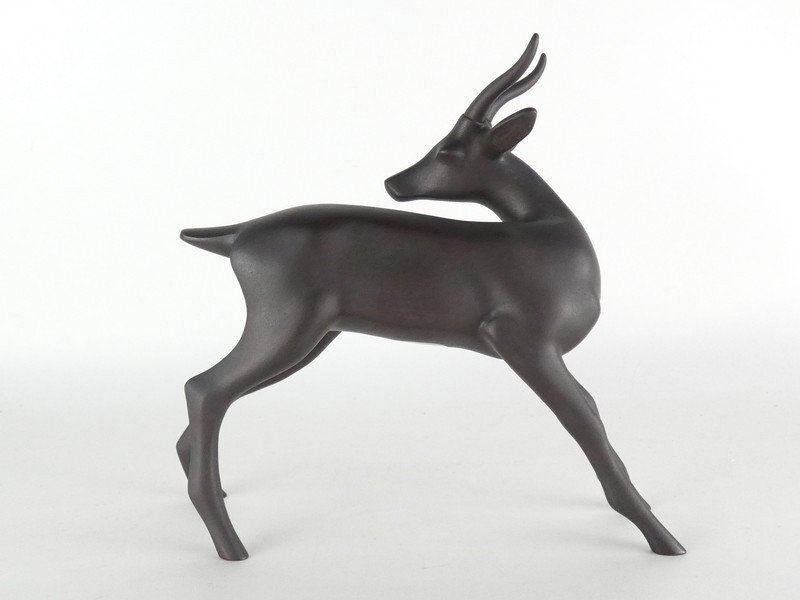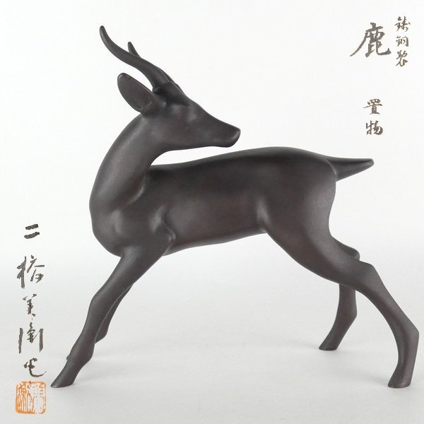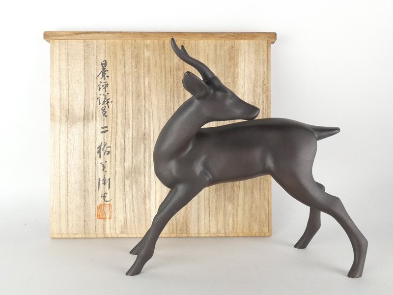 二橋美衡「鋳銅製 鹿」置物 共箱