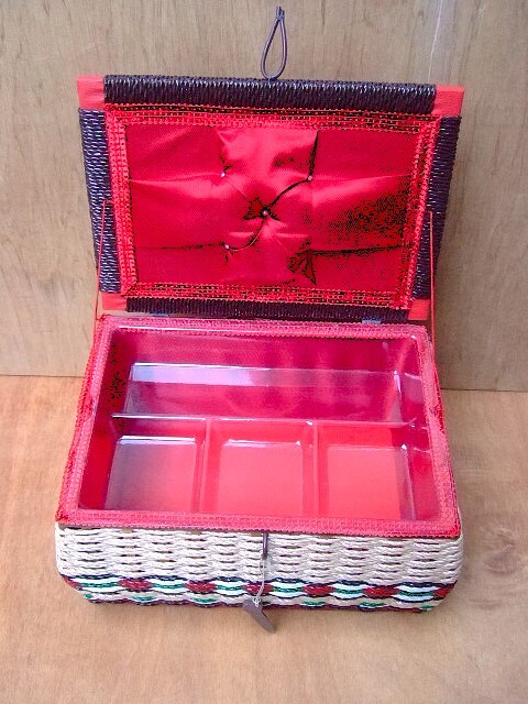 このタイプのソーイングボックスは多々出ていますが当時物で未使用でこれ程状態が良い物はあまり出ていません。