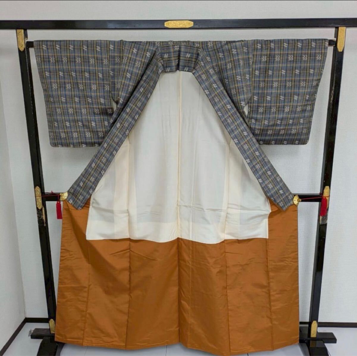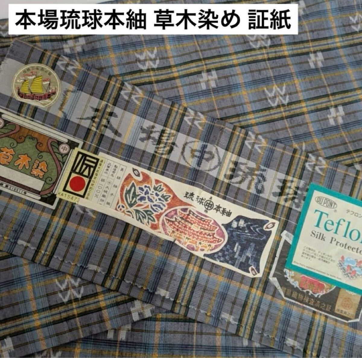 【楓】本場琉球本紬 草木染め 証紙 真綿紬 手織り 着物 KU-5416