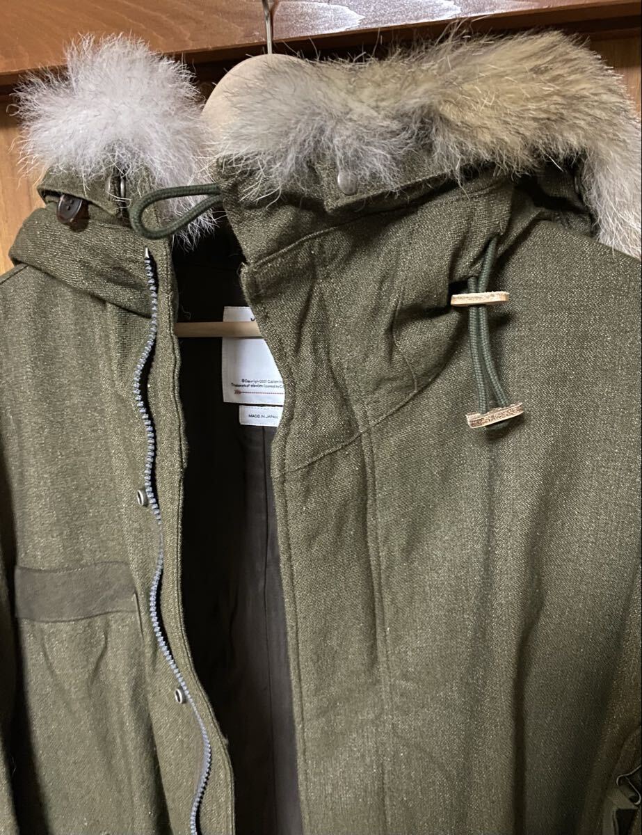 毛、麻で織り上げたツイルを使用したフィッシュテールパーカー