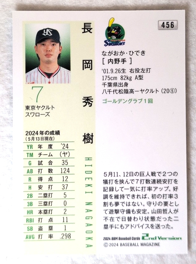 ★銀箔サイン★ 長岡秀樹 東京ヤクルトスワローズ BBM 2nd Ver 2024