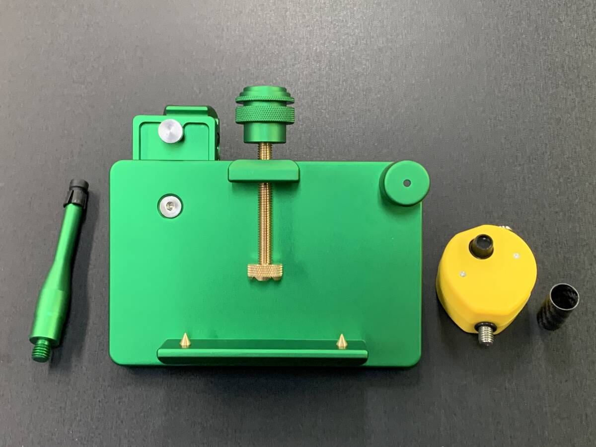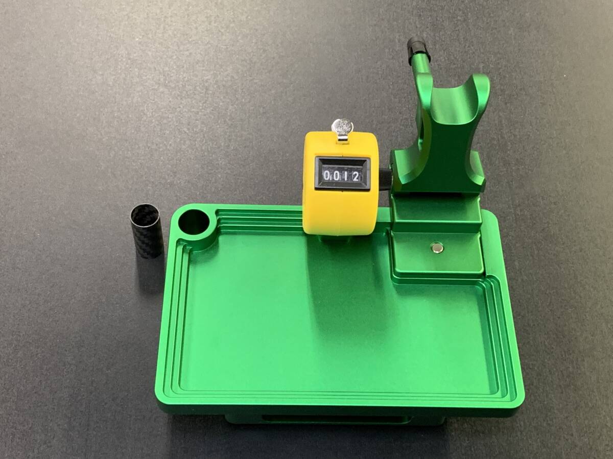 同梱発送可 アルミ削り出し角度調整大砲型万力式へらお膳 ミニお膳 緑 へらカウンター付