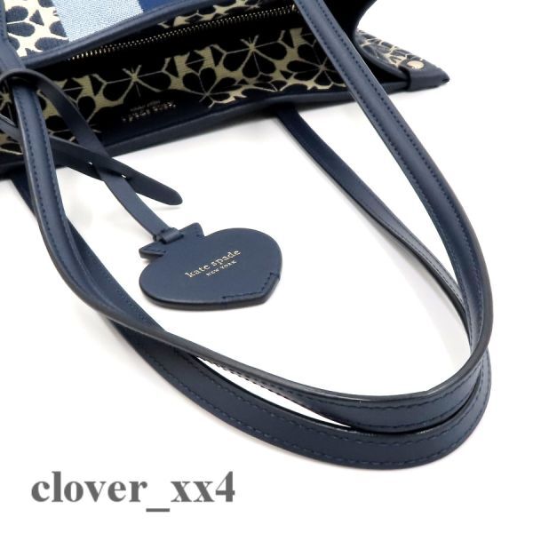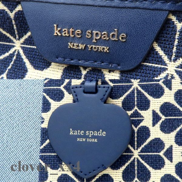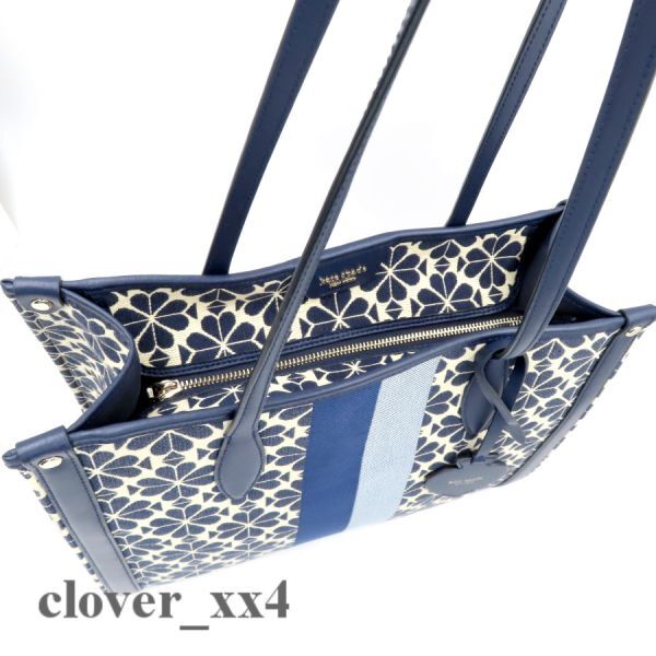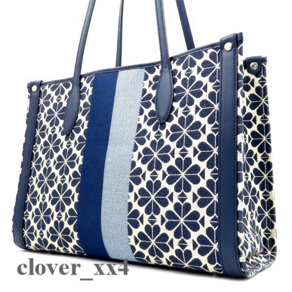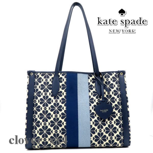 【極美品 A4】ケイトスペード トートバッグ スペード フラワー ジャカード 青 ブルー マルチ ストライプ kate spade バッグ PXRUB271 460