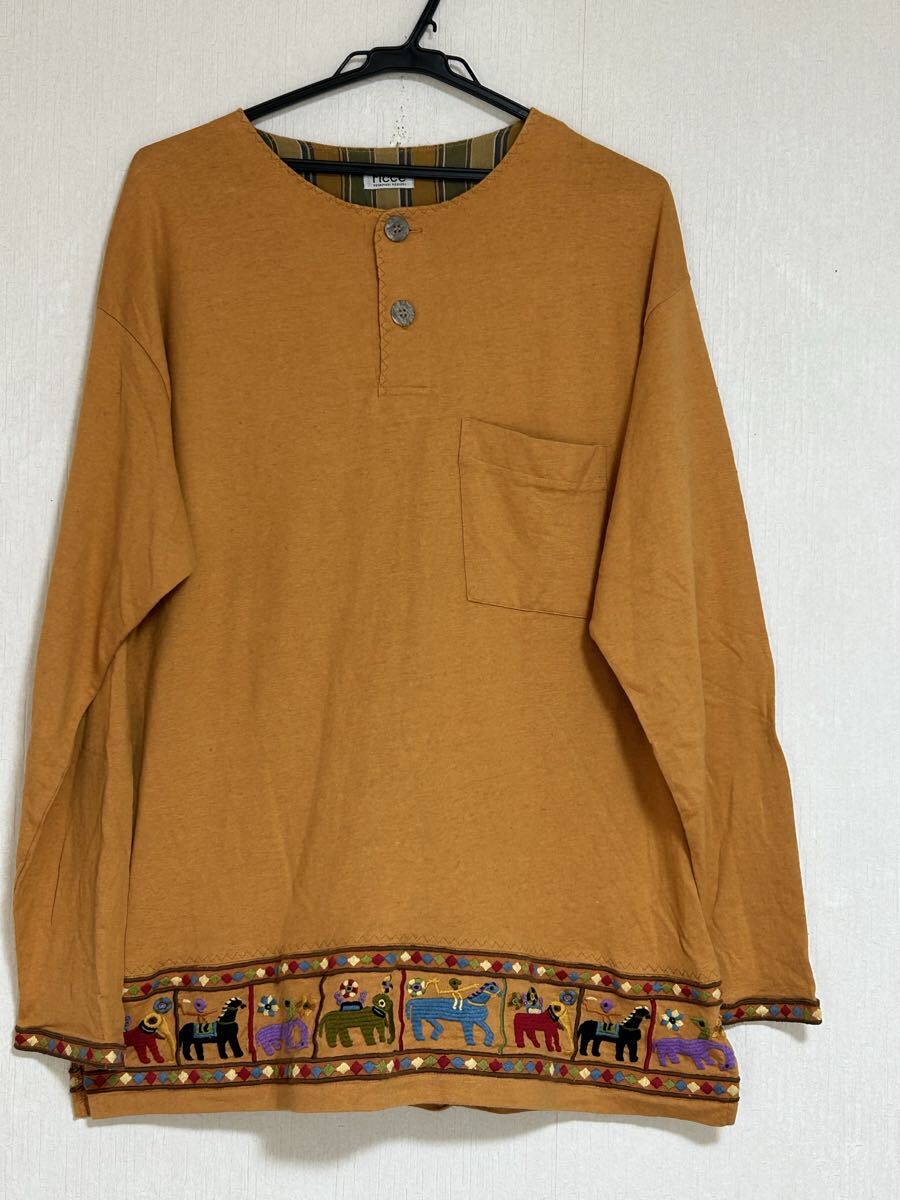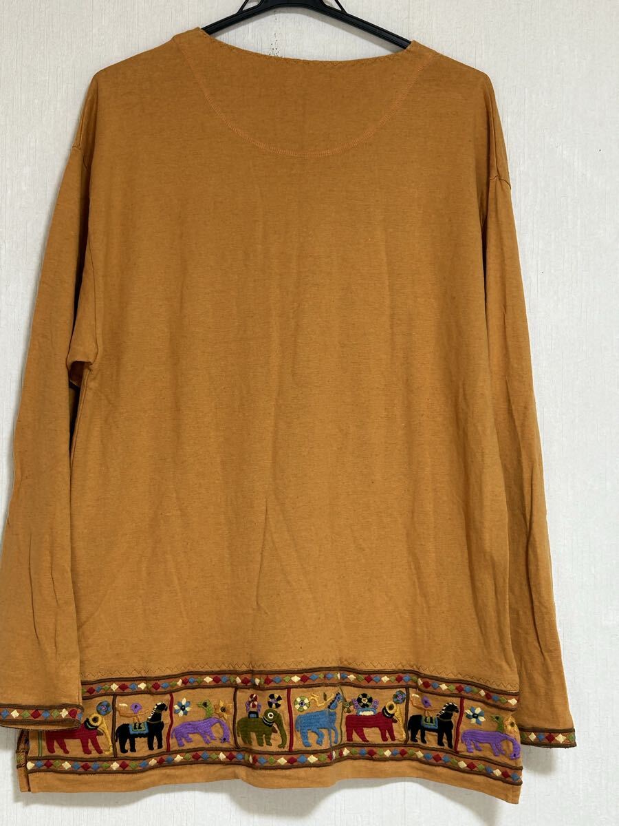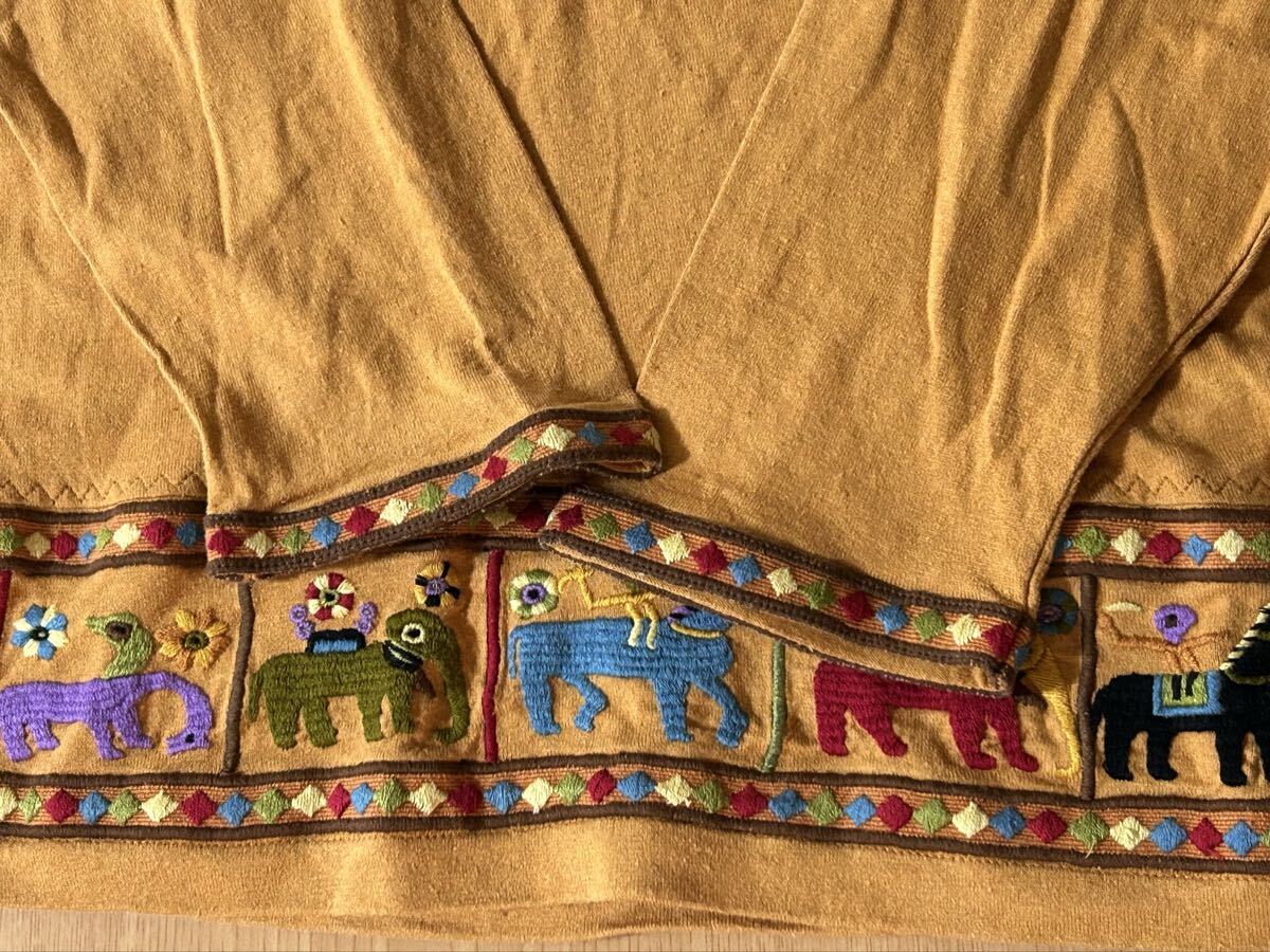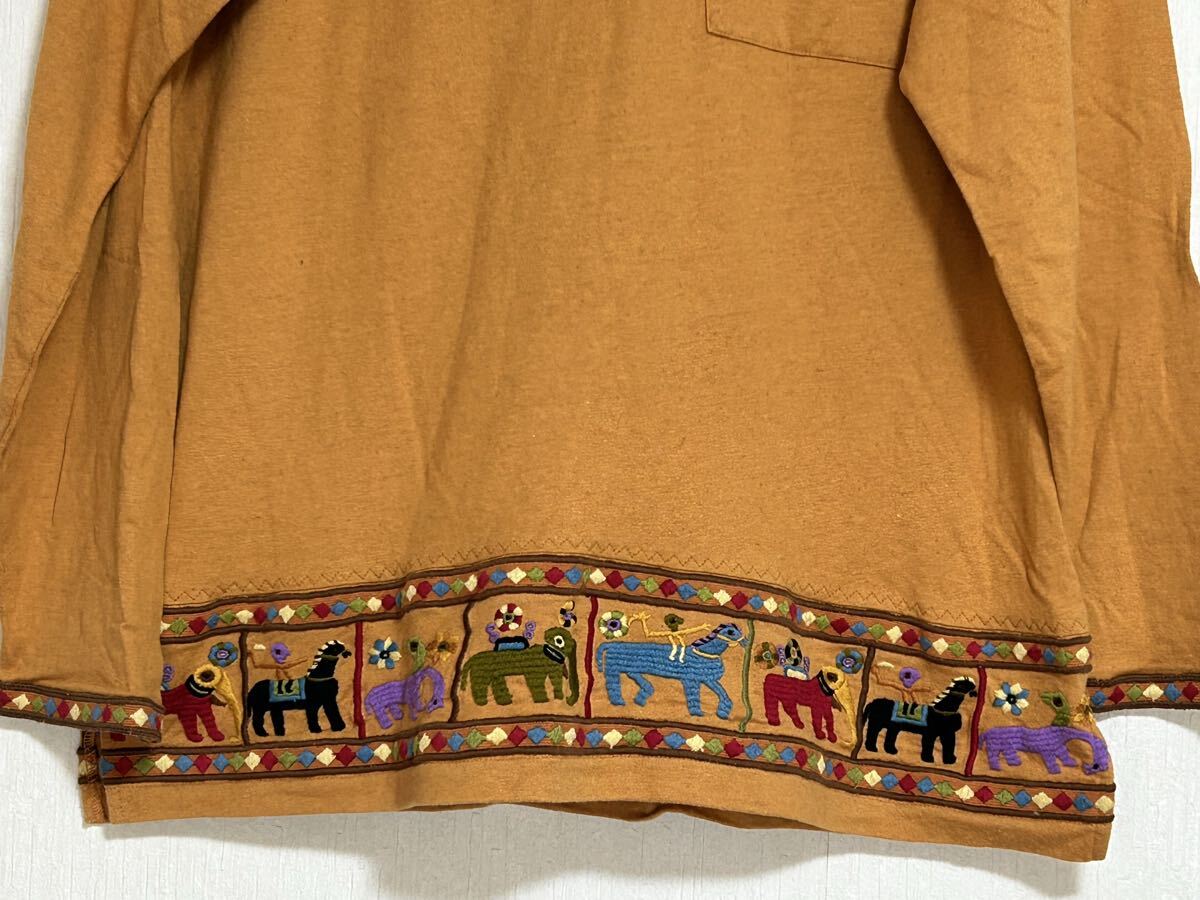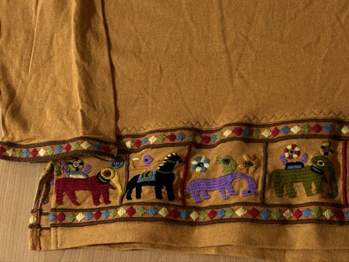 ☆ FICCE フィッチェ エスニック刺繍 長袖カットソー YOSHIYUKI KONISHI ドン小西 アニマル刺繍(馬 象)