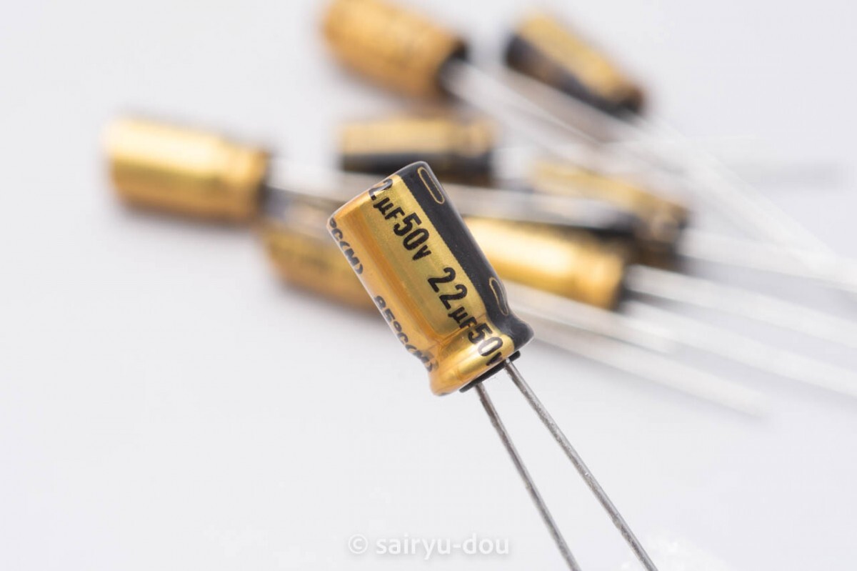 ニチコンのオーディオ用ハイグレード標準品・電解コンデンサ「FG(ファインゴールド)」です