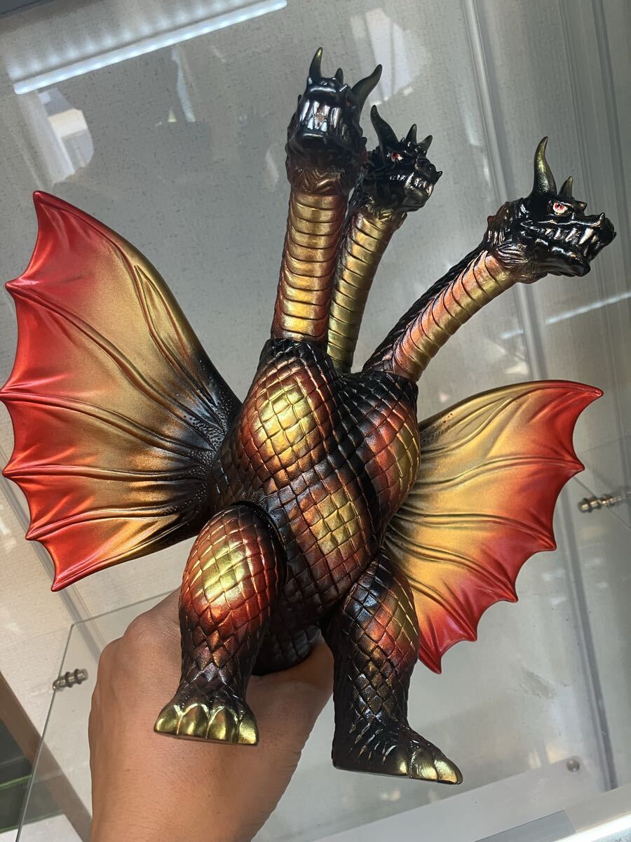 カスタムペイント キングギドラ ソフビ バーニングギドラ ノーブランド 26センチ ソフビ専用塗料 Vカラーをベースに塗装しています。 商品の状態は写真で確認してください。 ヘッダー 袋無しです。