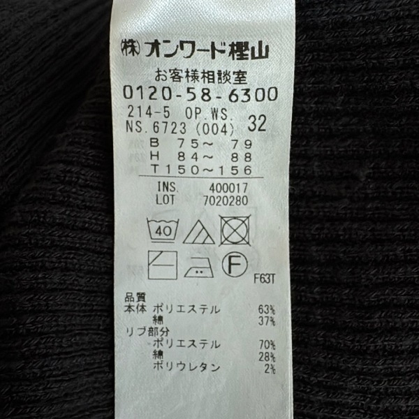 ニジュウサンク 23区 サイズ32 XS - 黒 レディース 長袖/ひざ丈 ワンピース