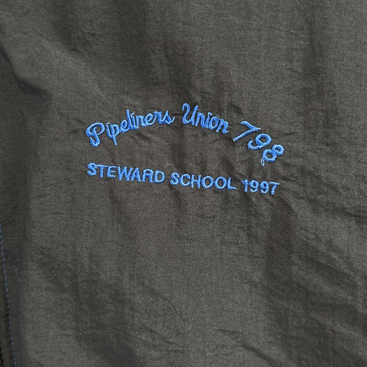 フロントには「Pipeliners Union 798」「STEWARDS SCHOOL 1997」の刺繍が入ったユニオン関連の企業ワークアイテム。